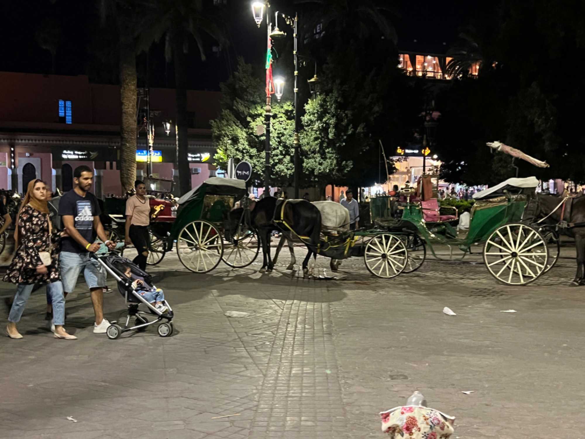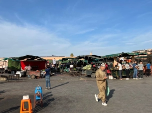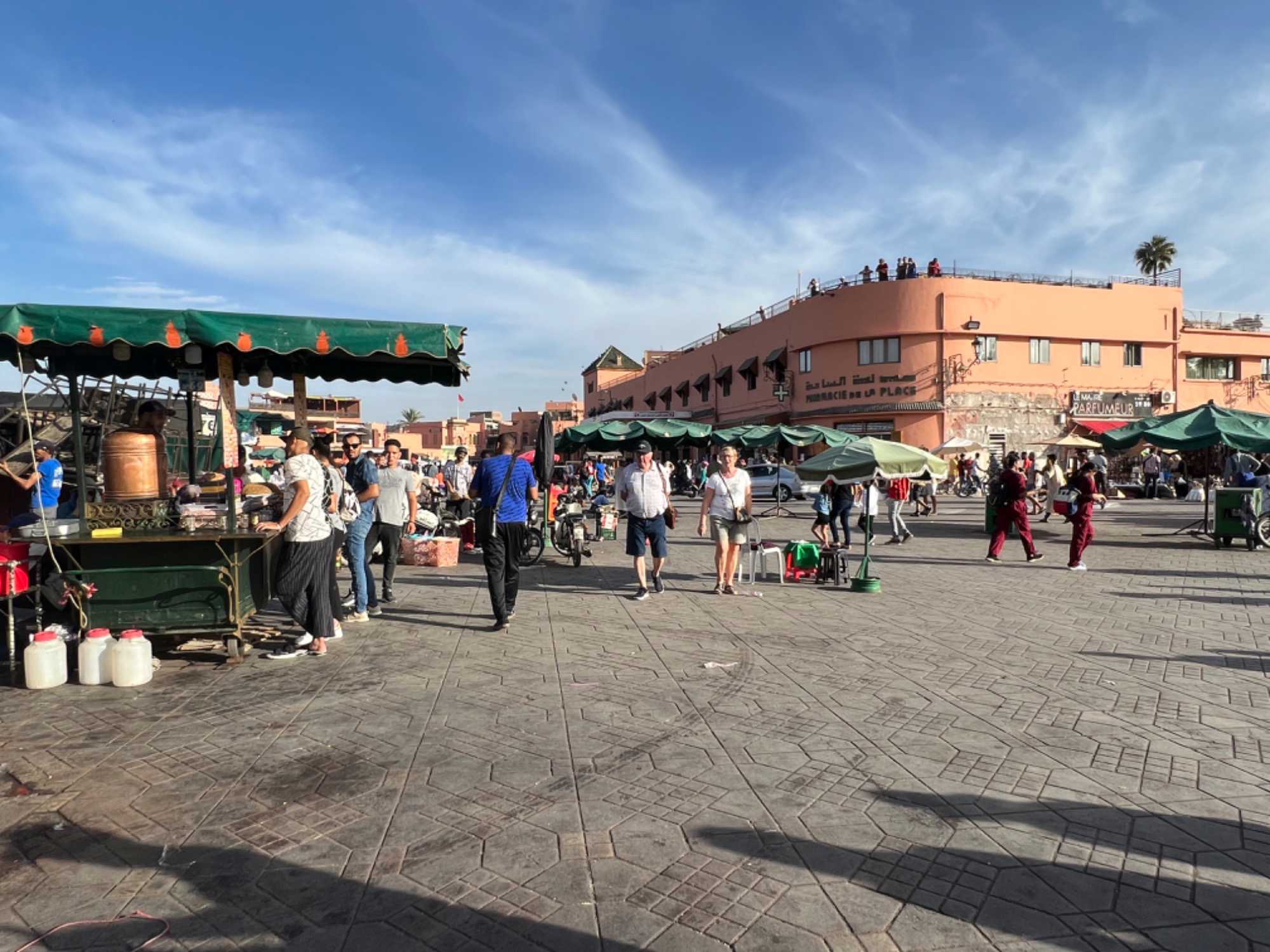 Puis, on nous montre la célèbre place Djemâa El Fna, soit le cœur palpitant de Marrakech, où nous reviendrons assister au spectacle permanent des conteurs, acrobates et charmeurs de serpents.