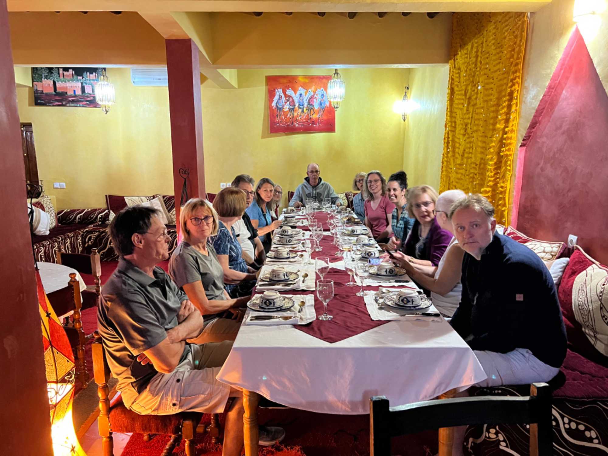 On mange dans un très beau restaurant offrant une très belle vue panoramique. On peut apprécier la Kasbah d’un très beau point de vue.