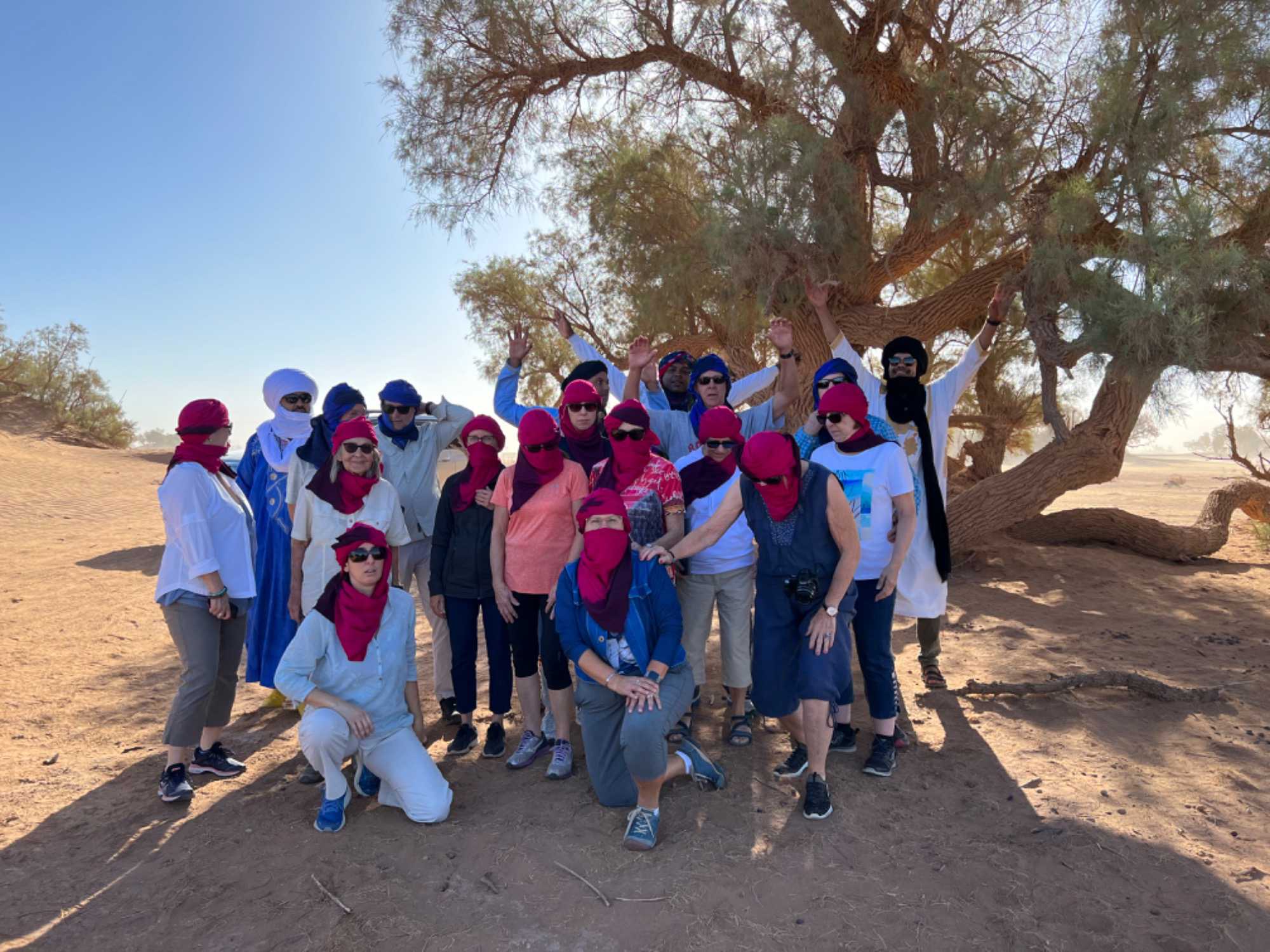 On soupe dans le désert, c’est très le fun et on mange encore très bien. Ici il y a une tradition, après le souper nos guide et nos hôtes chantent et dansent avec nous. Je peux vous dire que cette fois-ci nous en avons éprouvé du plaisir! Catherine nous a fait un spectacle de baladie, c’est une belle attention et vraiment beau.