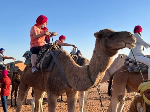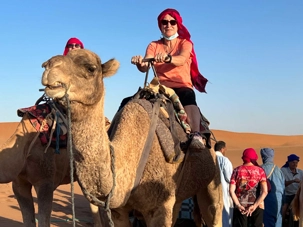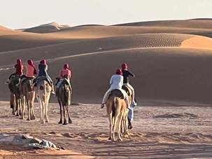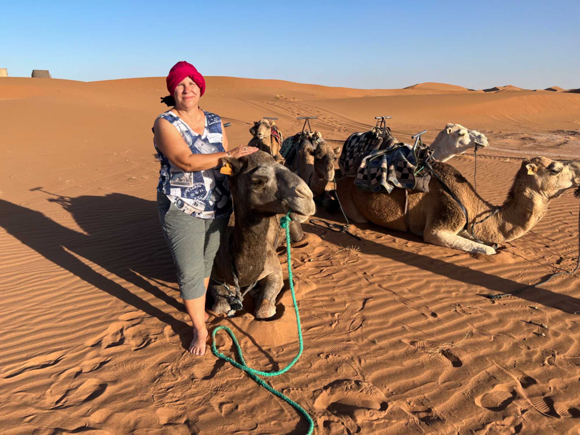 On relaxe un peu et contemplons les dunes. Les chameliers nous attendent pour la promenade, c’est le coup de cœur de tous.