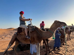 En dromadaire nous allons jusqu’à la plus haute dune afin d’observer le coucher du soleil wow ! C’est tellement beau.