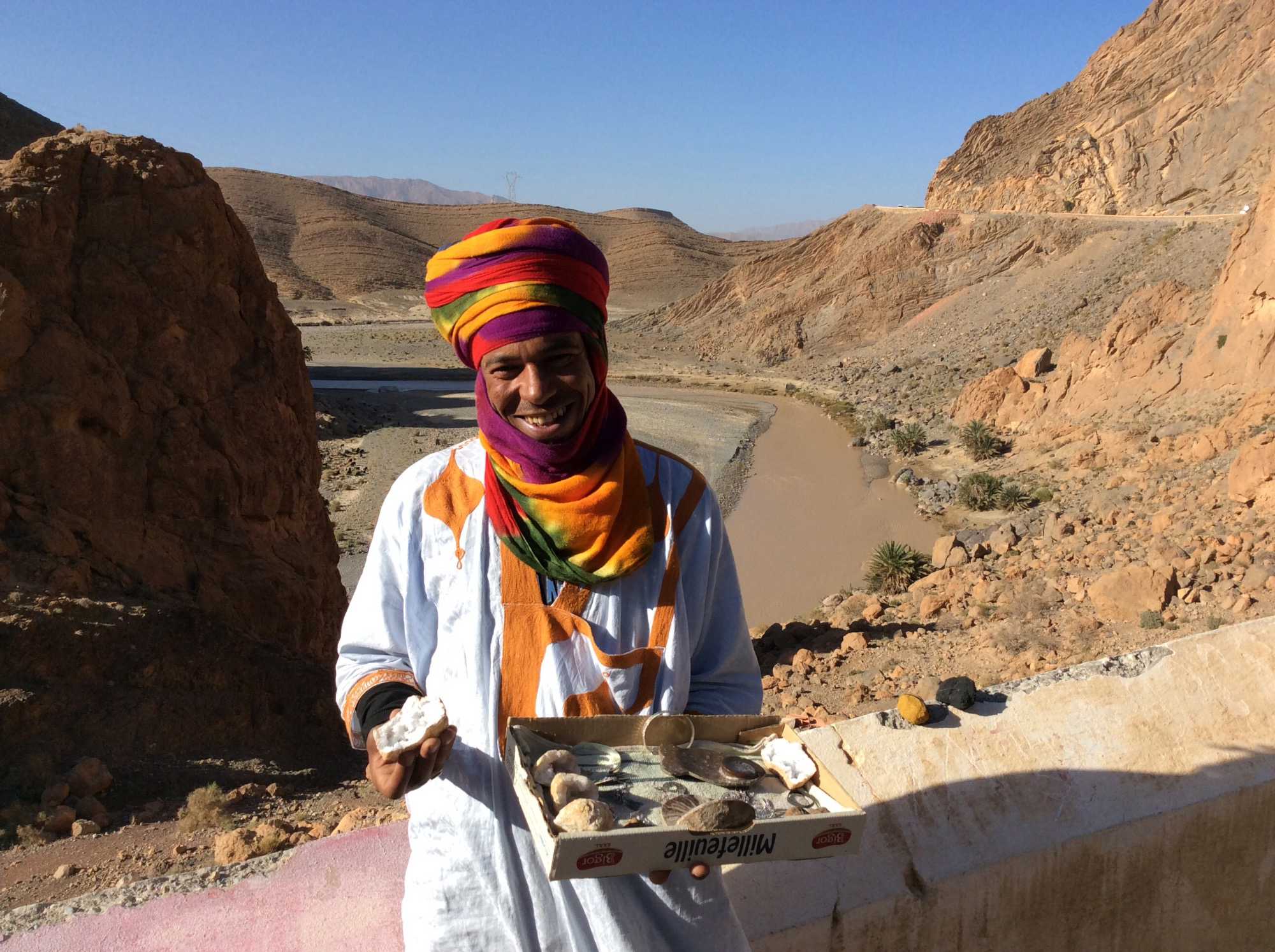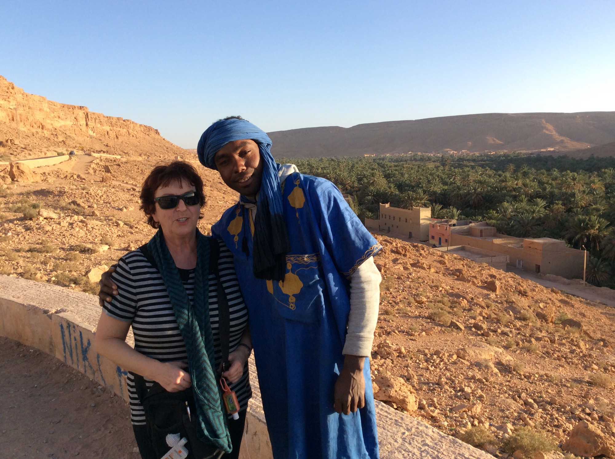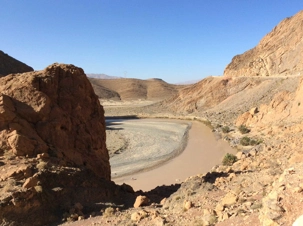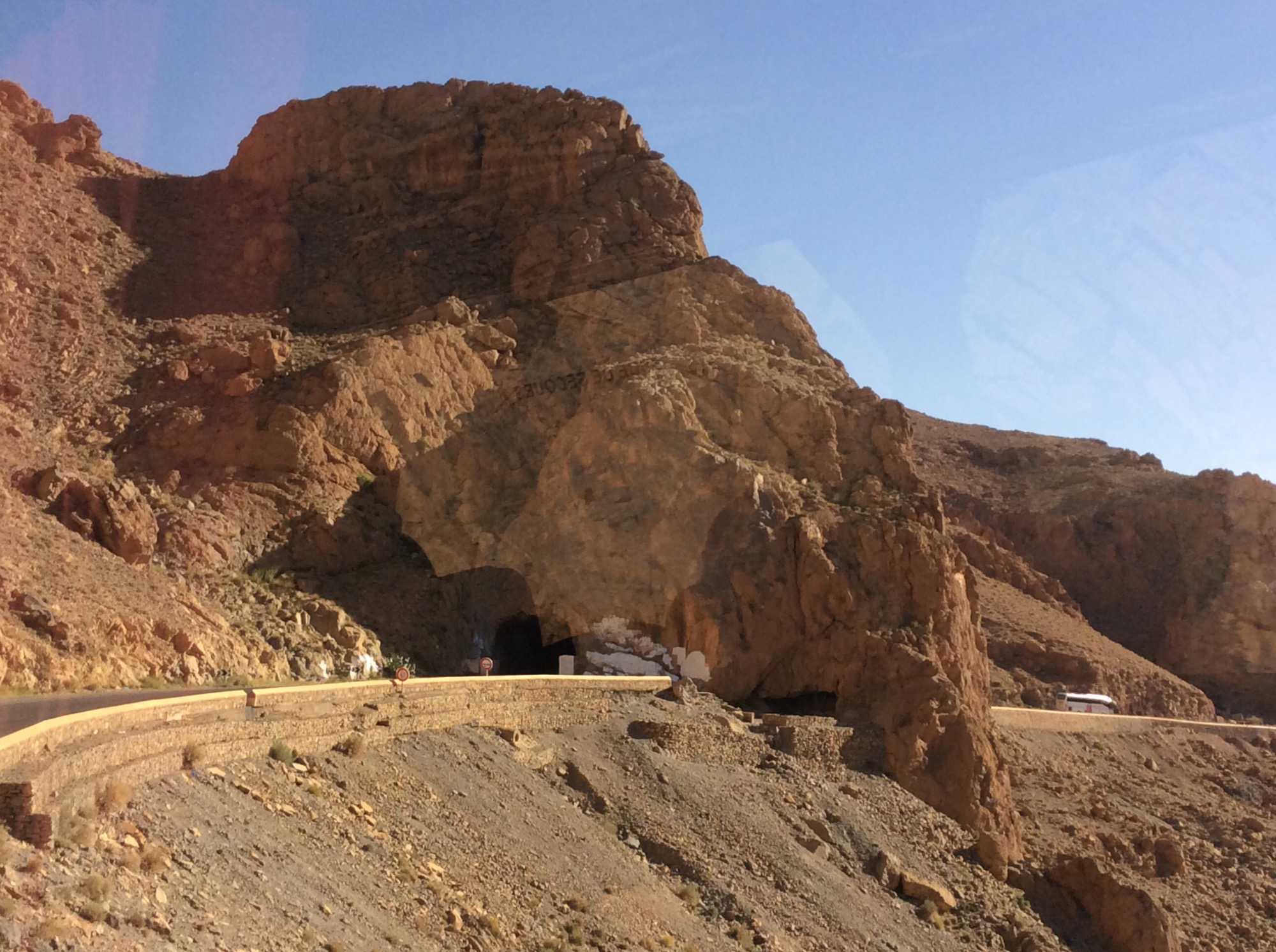Nous reprenons la route, en passant par la vallée du Ziz, le paysage est sublime. Passer le Ziz est diversifié et magnifique. Des roches et plissements calcaires à nu vers une vallée fertile bien verte tout en traversant le Haut Atlas en passant par le col de Tizi N'Talghaumt (1907m d’altitude). On monte en altitude, sillonnant une route sinueuse et tout en suivant les méandres de la rivière qui a creusé son chemin. Les pentes escarpées n'ont d'autre choix que de laisser certaines personnes émettre des exclamations... sans oublier les soupirs de Louise...empreints de terreur!