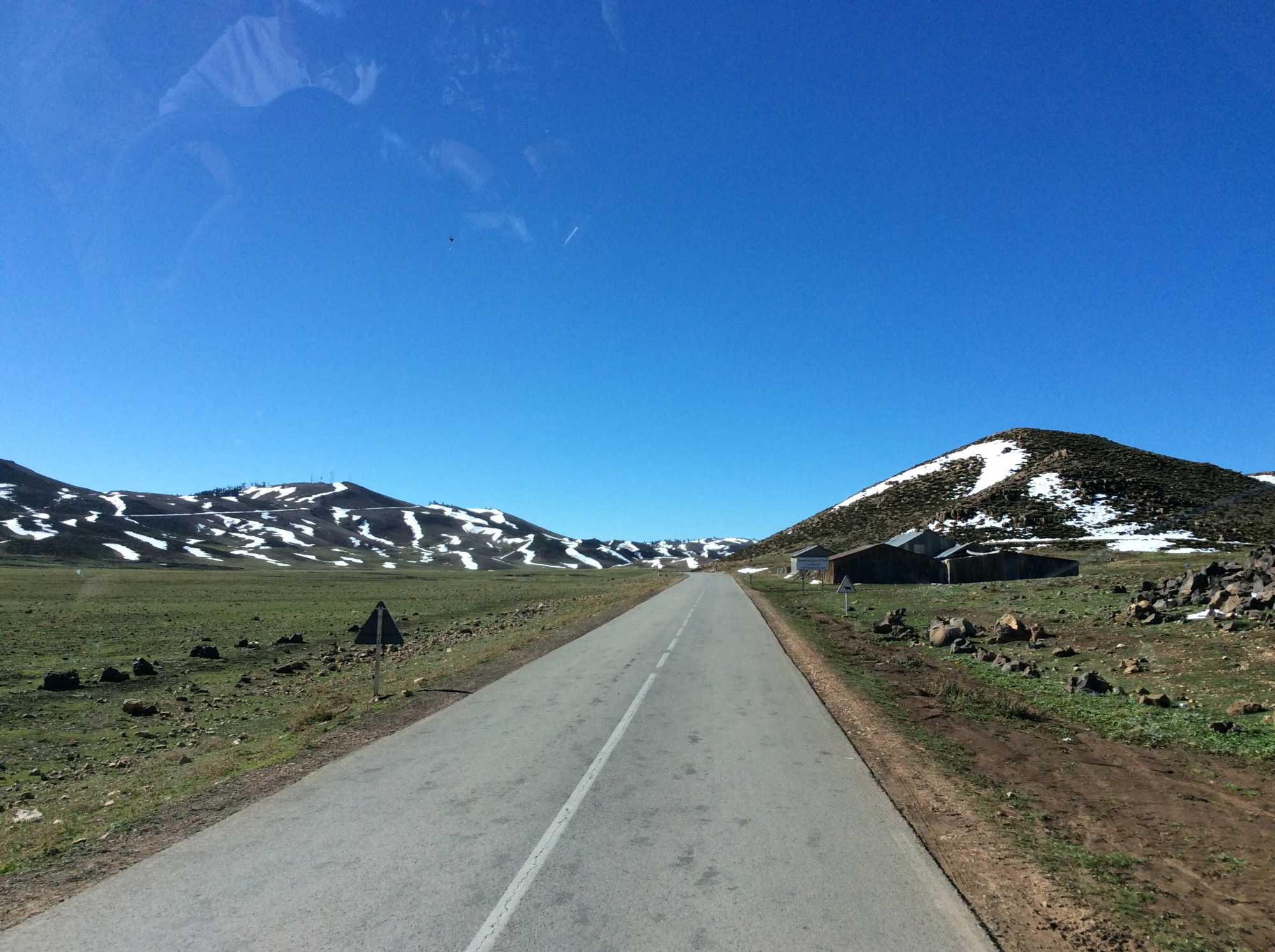Puis, c'est le départ! Nous avons une très longue journée de transport. C'est le grand soleil, sans nuage, mais avec une bonne variation de température, dépendamment de l'altitude à laquelle en se trouve!