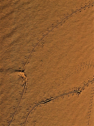 Je désire vous présenter le résultat d’un défi sur l’esthétisme auquel je me suis prêté qui était de faire un maximum d’images en 60 minutes présentant les traces laissées par "la vie" dans le désert.