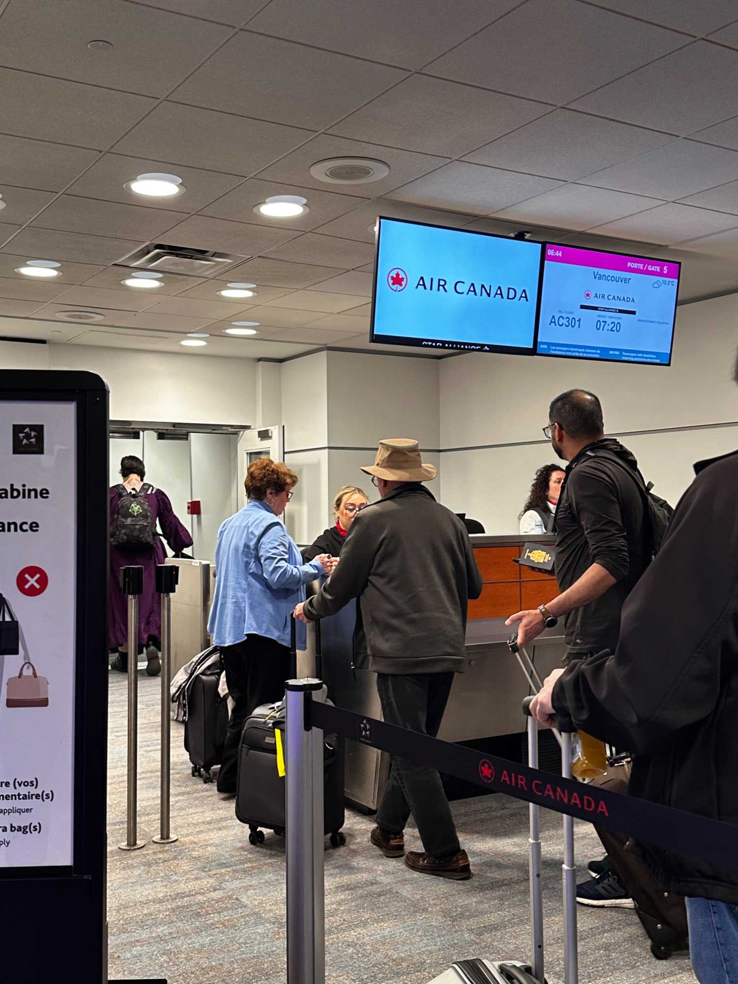 Ce matin, euh… disons la nuit passée, plusieurs membres du groupe ont choisi de profiter de l’excellent service de transport privé offert par Voyage Louise Drouin directement de leur résidence vers l’aéroport Montréal-Trudeau. Levés aux aurores pour se rendre à temps pour le vol de 7h30 ou logés à l’hôtel à proximité, tous arborent quand même un large sourire à l’arrivée au comptoir d’Air Canada. Il y a de l’excitation dans l’air! Oui, l’excitation de se rendre au Japon, mais surtout, la fébrilité d’avoir réussi à obtenir le fameux code QR du site des douanes japonaises nécessaire à l’entrée en sol nippon! Mention spéciale à Louise, oui, oui, Louise Drouin elle-même, qui pour le bien de ses voyageurs, a fait ce long processus au nom des voyageurs toute la soirée de dimanche. Encore merci. C’est un site semblable à ArriveCan, mais en vraiment plus compliqué ! Mention spéciale aussi à Richard qui a réussi à compléter seul le processus la veille !