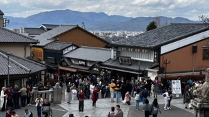 Arrivés à Osaka en fin d’avant-midi, nous commençons la visite par le spectaculaire Kiyomizu-dera, un site classé au patrimoine mondial de l’UNESCO. Avec son panorama à couper le souffle et son temple perché à même la falaise sur pilotis, on comprend vite pourquoi ce joyau attire les foules. Construit en 780 puis rebâti en 1633 après un incendie, ce temple bouddhique et sanctuaire shintoïste est un incontournable comme nous le démontre la marée de touriste venus l’admirer. Mais avant d’atteindre notre Graal, il nous faut gravir les ruelles commerçantes de Ninenzaka et Sannenzaka, véritables labyrinthes gourmands où chaque boutique semble murmurer « viens goûter un petit mochi »… Tentation, quand tu nous tiens !