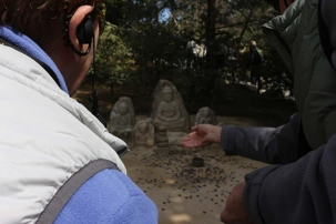 Encore aujourd’hui, à notre plus grand plaisir, nous remettons le cap sur Kyoto, le joyau du Japon ! Cette ville est une véritable machine à remonter le temps. Il y a environ 2000 temples à Kyoto! Sous un ciel sans pluie, parfois même ensoleillé et une température assez fraîche de 13º C, nous partons en compagnie de notre chauffeur et Jean, notre guide passionné, qui nous dépeint la région et toutes sorte d’information sur la vie des japonais. Que demander de mieux ! Sur la route vers Kyoto depuis le port de Kobe, nous avons vu un phénomène assez rare sur la route. Jean nous explique que c’est un rassemblement de Ouzumoukou. De jeunes motards turbulants dont les engins puissants font énormément de bruit lorsqu’ils roulent. Ces jeunes deviendront probablement et éventuellement des futurs Yakuza (mafieux japonais).