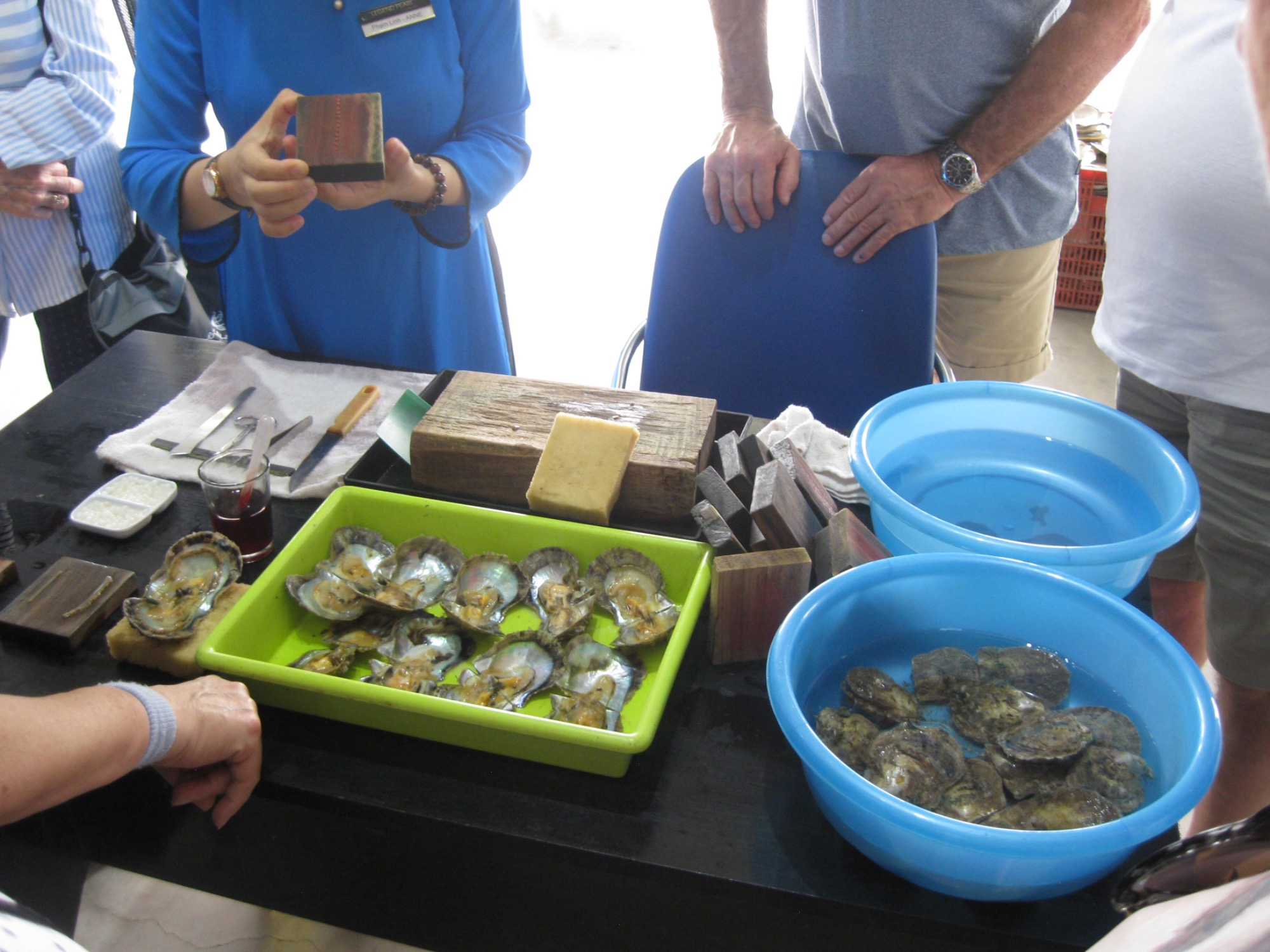 Sur la route, nous avons fait un arrêt dans une fabrique où on fait la culture de la perle. Lors de la visite, on nous a expliqué comment on procédait pour forcer les huîtres à produire des perles. Une fois les perles récoltées, au bout de 4 ou 6 ans, comment on les triait et comment on fabriquait des bijoux par la suite. Ce fut une visite très instructive.