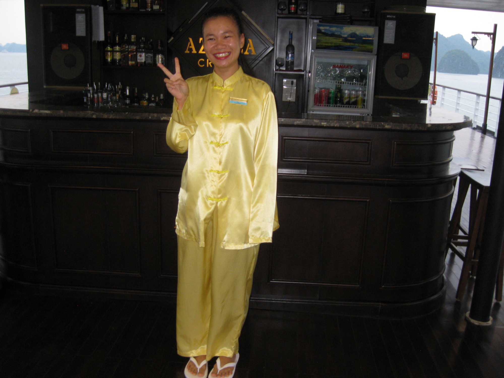 Rien de mieux qu'une bonne séance de Tai Chi pour commencer la journée. Ce matin, nous avons poursuivi notre croisière en naviguant entre les différents pitons rocheux, nous avons pris le repas du midi assez tôt car il fallait quitter le bateau vers 11 h 30. Ce fut vraiment une croisière de rêve, malheureusement beaucoup trop courte!! Même si Galarneau fut absent, la pluie ne nous a pas empêchés d’apprécier ce magnifique moment et n’a aucunement nui à nos activités.