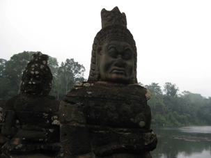 Angkor Thom (Angkor-la-grande), la cité royale a été la dernière capitale de l''Empire Angkorien. C’est le plus grand site dans le parc archéologique d'Angkor. À son apogée, on estime que la ville avait une population d'un million de personnes. Pour entrer dans la ville, il faut passer par l'une des 5 portes d''entrée qui sont surmontées de 4 faces géantes et les ponts menant aux portes sont bordées de statues.
