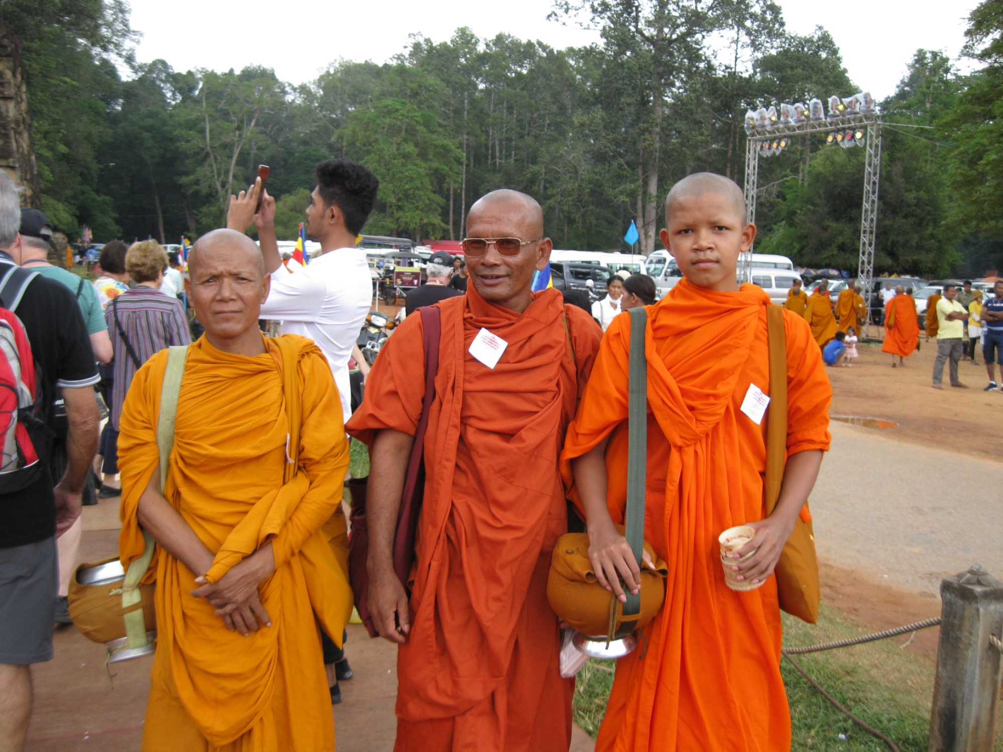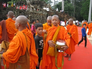 Par la suite, nous nous sommes dirigés vers le Baphuon (Montagne d''or), c'est un temple qui se situe entre le palais royal et le Bayon. Construit vers 1060 à la gloire de Shiva (dieu hindou) il s'agit du plus grand temple-montagne d''Angkor. Par la suite, nous avons vu la terrasse des éléphants. Toute une surprise nous attendait à la terrasse des éléphants, il y avait une réunion de 5000 moines novices et seniors qui assistaient à une cérémonie de prières, tout un spectacle quand 5000 personnes, accompagnées de tambours psalmodient des mantras. C’était très impressionnant! Quelle chance d’être là au bon moment!