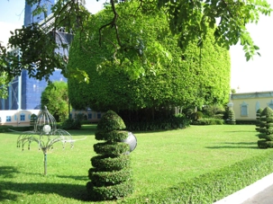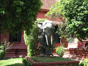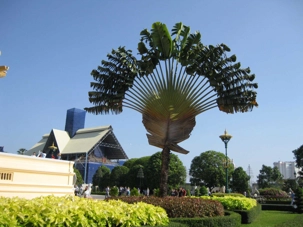 Il y a de magnifiques grilles en fer forgé représentant des Apsaras qui gardent l'entrée du palais. Une fois ces grilles franchies, on peut admirer un arbre qui sort de l'ordinaire non par sa forme mais par les fleurs et les fruits qu'il produit. Ses fleurs sentent la rose et ses fruits sont gros comme des ballons de volley-ball. On le nomme « l'arbre à boulets de canon » (Couroupita guianensis).