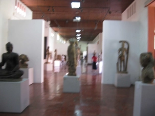 Nous avons effectué une dernière visite avant de passer à table, ce fut le musée national. Le musée et sa magnifique esplanade, construit par les français à partir de 1917, occupe un vaste bâtiment de couleur ocre. Il expose les chefs d'œuvres de l'art et de l'artisanat khmers. On y retrouve des collections de bronze, des pièces en grès et des pièces en bois. C'est un complément indispensable à la suite de la visite des temples khmers.
