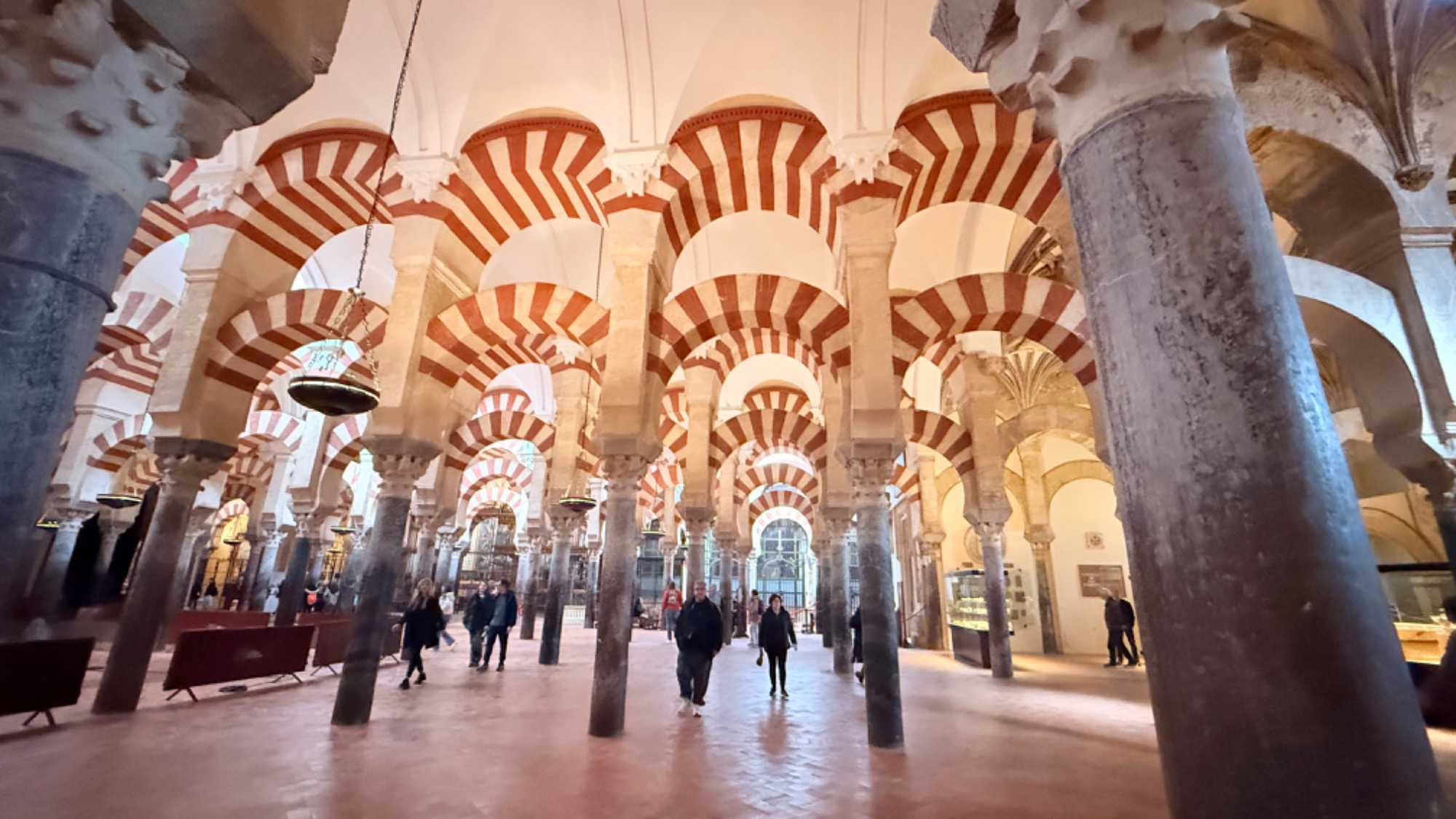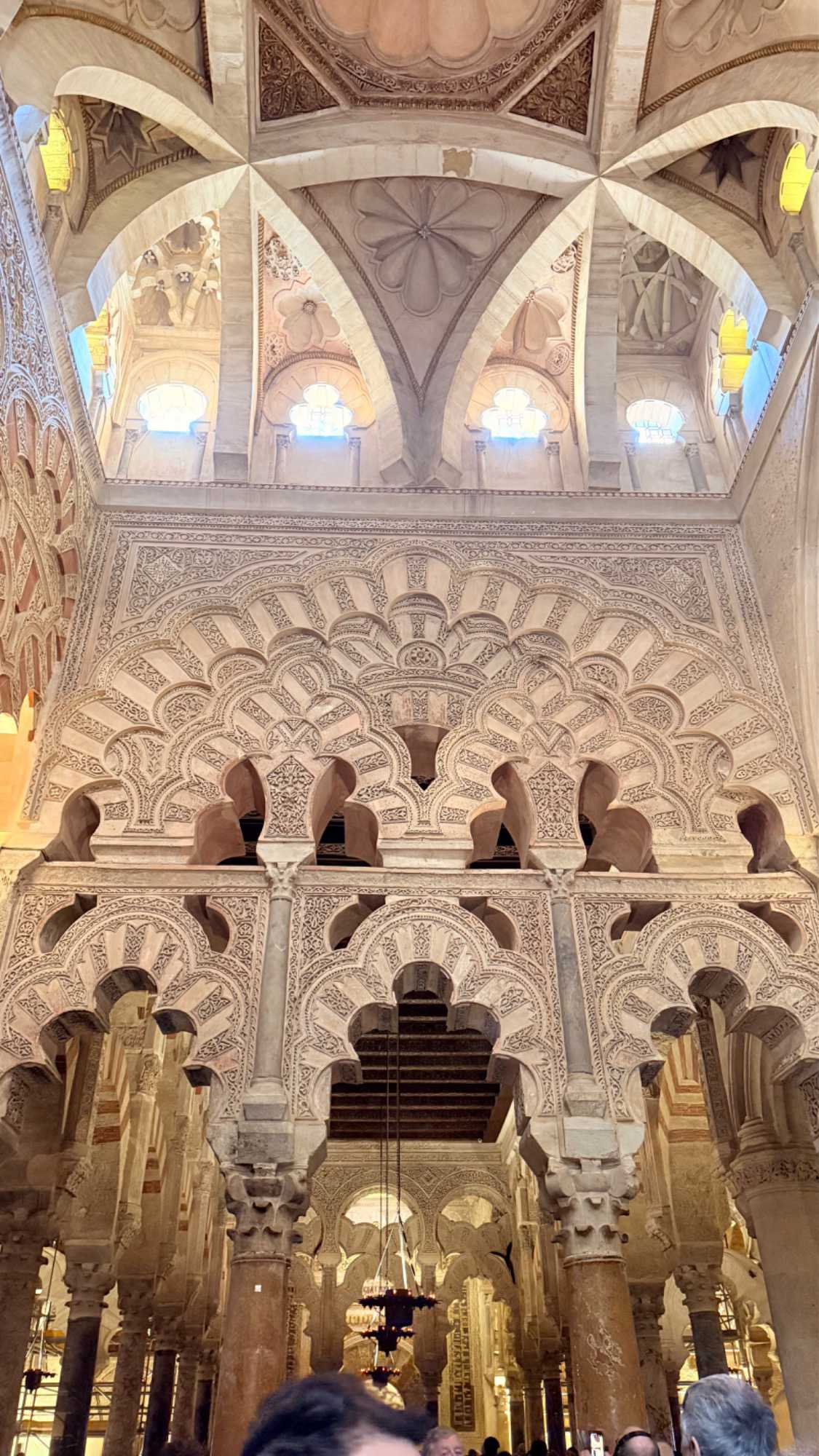 Nous nous arrêtons pour diner sur le pouce, comme on dit, et prenons ensuite le temps de visiter la seule et unique cathédrale née d’une mosquée qui existe dans le monde. La Grande Mosquée, ou Mezquita Iman, fondée en 784 a été transformée en église catholique en 1236. Elle représente une réalisation artistique unique par sa taille et par la hauteur de ses plafonds. Il s’agit d’une architecture hybride associant nombre de valeurs artistiques d’Orient et d’Occident et incluant des éléments jusque-là inconnus, notamment l’utilisation de doubles arches pour soutenir le toit. Elle a été inscrite sur la Liste du patrimoine mondial en 1984 et le bien a été étendu en 1994 pour inclure une partie du Centre historique, l’Alcázar, le pont romain et la tour de la Calahorra. Bien que je l’ai vue plusieurs fois, je ne me lasse jamais d’y emmener mes groupes pour partager ce coup de foudre!