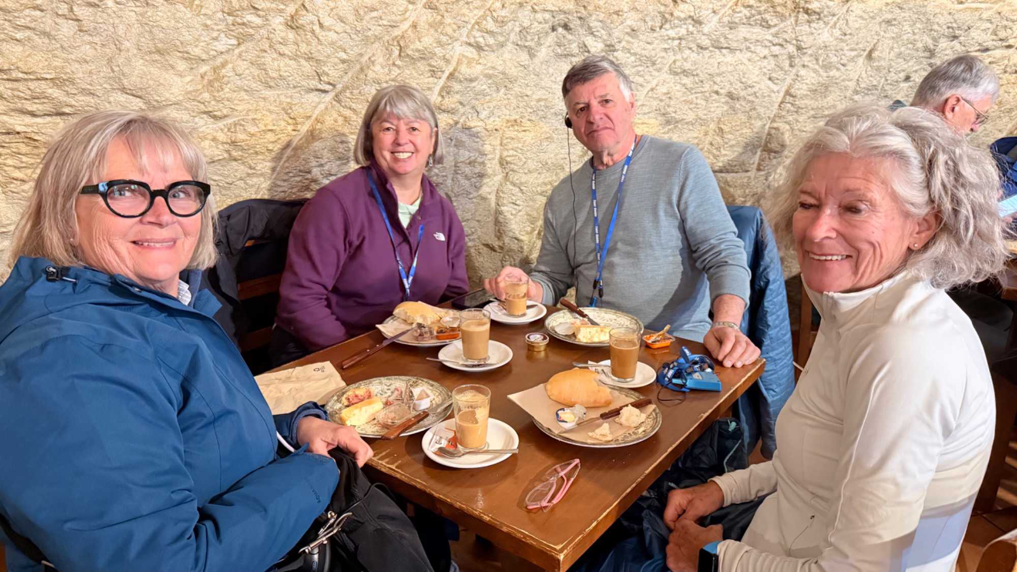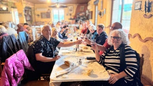 Après cette dégustation, rien de mieux qu’un bon repas dans un restaurant typique de la région où nous avons d’abord dégusté une soupe de légumes, d’amandes et de graines de citrouille à laquelle nous avons ajouté des croûtons à l’huile d’olive qui était absolument fabuleuse! Puis, nous avons enchainé avec le plat principal, une assiette avec des patates dites du pauvre, du jambon au gout exquis, un chorizo un peu relevé, du boudin frais et un œuf. Je vais manquer de vocabulaire pour vous dire combien c’était délectable! Et pour dessert, un flan au caramel tellement suave qu’on s’en lèche encore les babines!