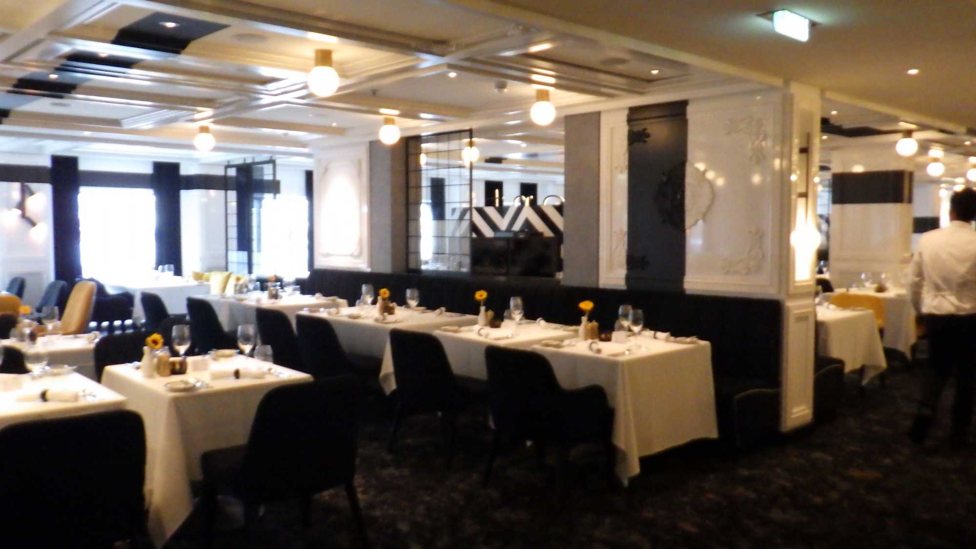 Il y a aussi la disparition de l’immense salle à manger, remplacée ici par quatre restaurants de moindre dimension, Le Normandie, Le Tuscan, Le Cyprus et le Cosmopolitan. Chacun d’eux sert le même menu à 80 % chaque soir, il y a une petite variante d’un à l’autre et un décor très différent.