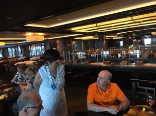 Une journée en mer, toujours dans les Caraïbes, pas de cadran pour nous réveiller, certains se sont même réveillés à 10 heures, et pas d’heure pour nous coucher. C’est la vraie vie de croisiéristes. On rencontre nos amis ici et là durant la journée. Un petit rendez-vous à 11 heures ce matin, à notre fameux local attitré, qui se nomme le Board Room. On répond aux questions, on discute entre nous et préparons la journée de demain, c’est très sympathique.