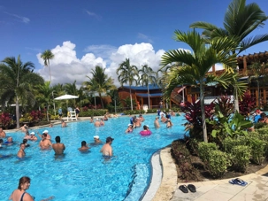 Une immense passerelle couverte nous mène du navire à la terre ferme, si vous avez de la difficulté à marcher vous pouvez prendre une navette, gratuite. Comme nous sommes à quai, nos voyageurs ont pu se rendre sur la caye à leur convenance. On y retrouve une piscine à cascades de 15 000’ carrés, de plus, si vous avez un handicap physique la piscine est munie d’une chaise hydraulique vous permettant de vous immerger dans l’eau, un bar dans l’eau, des chaises longues auxquelles vous pouvez ajouter un abri, des jeux d’eau pour enfants, des gazebos, des chalets climatisés avec plage privée, des bars et restaurants et des boutiques. Sportifs, vous pouvez louer des pédalos, des paddle ou des kayaks. Toutes les commodités sont tenues par des locaux, c’est-à-dire des résidents de Belize, c’est l’entente que Norwegian a prise avec eux.