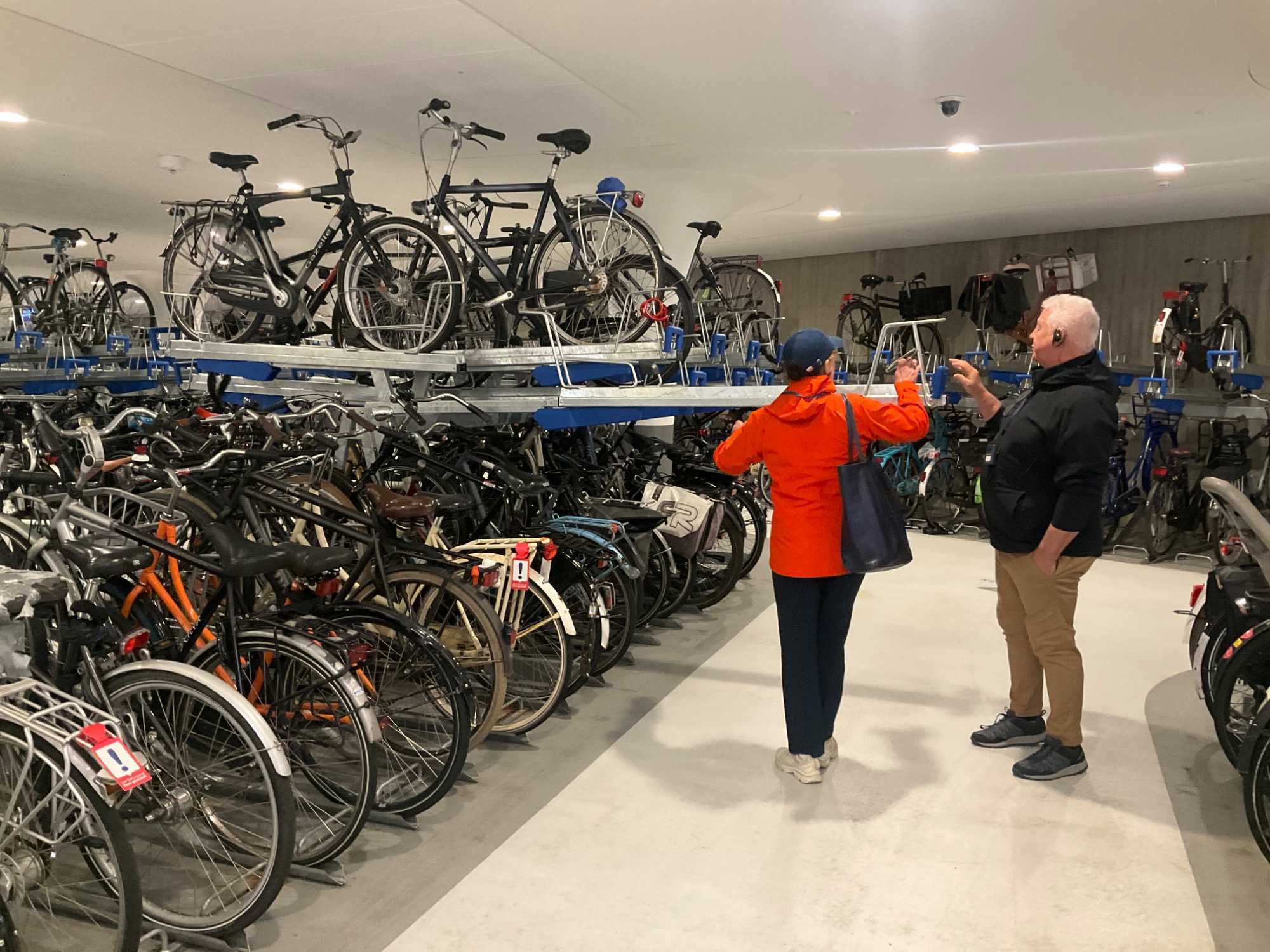 Avec ce dernier groupe, Agnès nous invite dans le sous-bassement de la ville pour voir…un stationnement de vélos. Imaginez 7000 vélos sur deux étages. Il y a tout d’un stationnement comme pour les voitures, même des lumières pour indiquer s’il reste des places. Pour nous, ce genre de paysages est complètement nouveau et nous donne un aperçu de l’importance du vélo dans la vie des amstellodamois (retenez ce mot, ce sera dans l’examen final du voyage hihi).