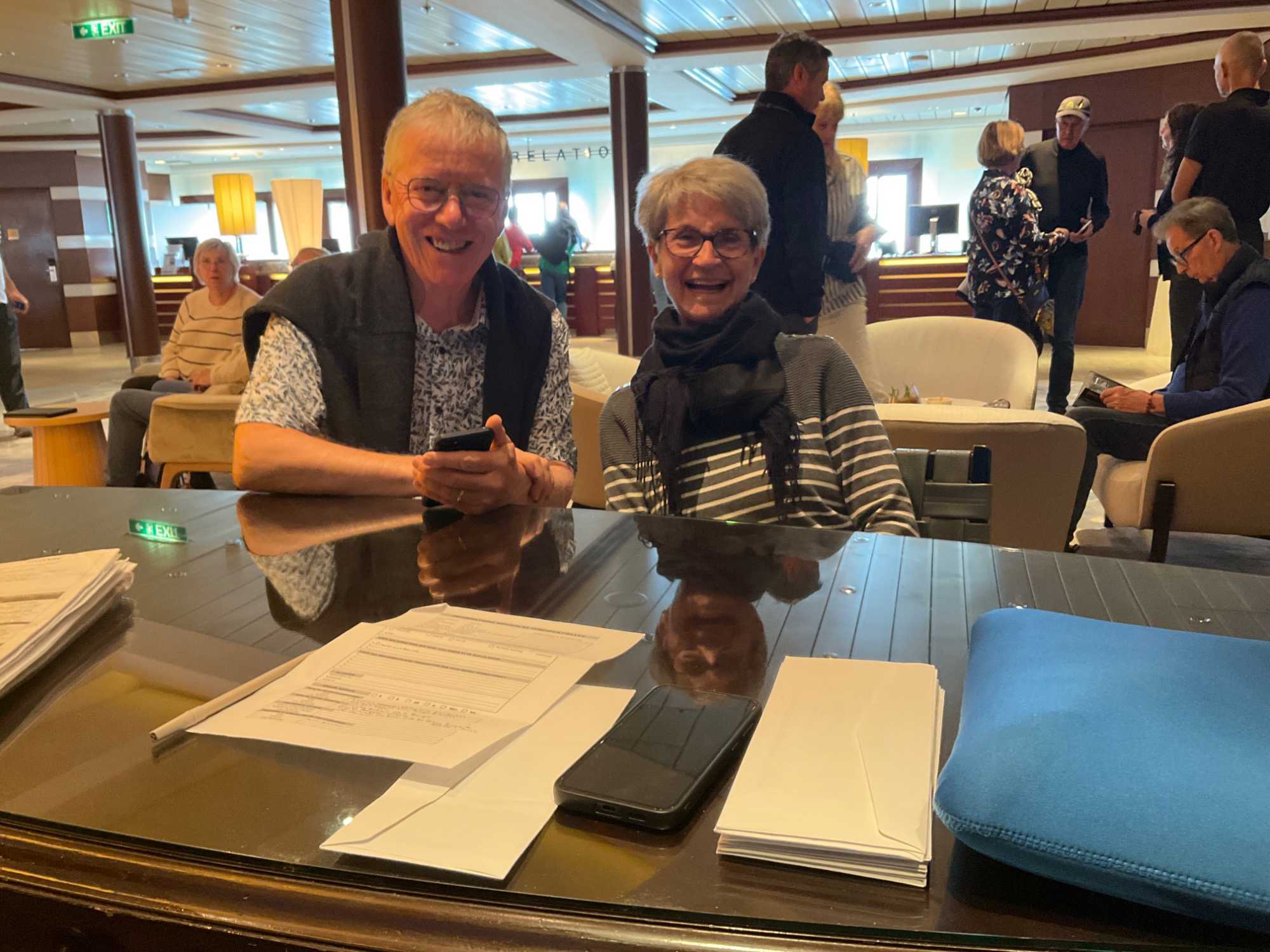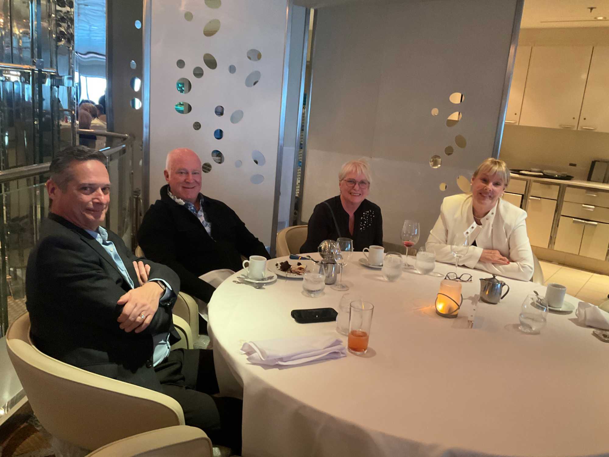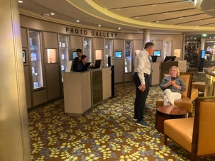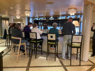 Finalement, faire le tour de ce navire a occupé notre journée que nous avons complété par un petit 5 à 6 au bar Cellar Masters avec une quinzaines de voyageurs avant de se retrouver à la salle à manger. Et notre ami Yves qui s'est dévoué pour remettre les pendules â l'heure de tous pour le forfait wifi qui ne semble pas toujours collaborer pour les voyageurs et pour moi. Ah la technologie! Merci au grand manitou du nuage électronique. On ne le llaisse pas partir celui-la.