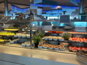 Nos voyageurs en profitent pour reprendre quelques heures de sommeil perdues pour s'adapter au décalage horaire. On a bénéficié de longues heures pour prendre un deuxième, troisième café…à la cabine en regardant défiler les vagues. Pour notre premier déjeuner à bord, le choix est gargantuesque. Et certains sont fait forts : la saucisse, le bacon… le saumon fumé. On devrait être bons pour se rendre au dîner.
