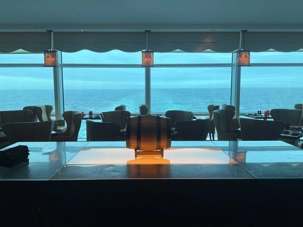 La mise en service de ce magnifique navire de Celebrity Eclipse 5*, s’est effectuée en 2010. On a la chance de profiter de ce navire rénové en 2015. Sa longueur est de 315 mètres, sa largeur de 37 mètres. Il peut accueillir à son bord 2 850 passagers. Pour notre plus grand confort, 1400 membres d'équipage répondent à nos petits caprices et nous chouchoutent. Son volet plus technique propose un tonnage de 122 000 tonnes. Il possède 16 ponts. Il nous a fallu la journée pour en faire le tour et même encore en sortant de l’ascenseur, on se trompe pour aller à notre cabine. Vous riez? Je voudrais bien vous y voir vous aussi; mais on a tout notre temps et c’est un …heureux problème! Sa vitesse est de 24 nœuds. Bon j’avoue qu’il ne gagnerait pas la course le Vendé Globe ou la Transat Québec St-Malo mais nous, ça nous donne le temps de mettre le nez dehors et de respirer les brises frisquettes aujourd 'hui.. En résumé, il est spacieux et luxueux comme la vaste gamme des navires Celebrity. Et si comme moi, vous appréciez bien le design avant-gardiste, l’excellence culinaire, le bien-être inégalé et le service incomparable, on est bien servi avec ce navire.