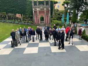 Nous faisons un arrêt photo entre deux ponts dont un premier suspendu très ancien et le deuxième, plus moderne le Britannia que nous avons traversé. Puis Julie nous parle du prochain endroit à visiter ; donc nous nous rendons à Portmeirion, véritable joyau gallois aux inspirations italiennes marquées. On doit la construction de ces remarquables édifices de reproduction à l’architecte milliardaire et excentrique Sir Clough Williams-Ellis, élaborés entre 1925 et 1976, le projet de sa vie. Son objectif était d’illustrer comment un site naturel magnifique pouvait être aménagé sans le dégrader. Cet architecte excentrique possédait 9 complets...identiques et ne dérogeait pas à porter toujours ces mêmes vêtements. Même si son architecte nia toujours avoir voulu reproduire la ville italienne de Portofino, mais assurément on est transporté dans l’atmosphère italien des petits villages méditerranéens. La Ligurie? La Toscane? Chose certaine c’est un petit bout d’Italie au Pays de Galles. Les mêmes portes, les mêmes maisons colorées, les mêmes piazza (attention je n’ai pas dit pizza), ça ressemble à un hommage aux pêcheurs de la Riviera italienne. Un critique d’architecture, Lewis Mumford, a même dit que Portmeirion ressemble à « un petit village moderne astucieux et ludique, conçu comme un tout et une fantastique collection de reliques architecturales et de fantasmes modernes et espiègles. » Une chose est certaine; la petite cité galloise nous enchante tous. Afin de poursuivre la tradition, son petit-fils a pris la relève de cette reproduction italienne épatante. Le film "Le prisonnier" a même été tourné ici dans ce faux village. Le même artisan peintre travaille avec ses pinceaux à repeindre de teintes pastelles depuis 44 ans chaque recoin des bâtiments avec souci d’authenticité et ce pour au moins une quinzaine de fois chacun. Nous avons pris de nombreuses photos, allez y jeter un coup d'oeil. Voyez-vous l'immense jeu d'échec? Le jardin? Ici, on veut donner impression que rien n’a changé depuis des années. Même, de nombreuses fenêtres sont des trompe-l’œil. Très mignon de s’y promener doucement et de repenser à des endroits déjà visités en Italie. Les Beatles y seraient venus et il paraît que John Lennon aimait particulièrement cet endroit. Un petit trésor du Pays de Galles cerné par le massif montagneux de Snowdon en toile de fond où nous nous dirigeons juste après. Ah, j’oubliais, il n’y a jamais eu le moindre habitant ici. Une belle complicité entre l’œuvre d’art et le village méditerranéen. Préférons-nous l’original ou la copie?