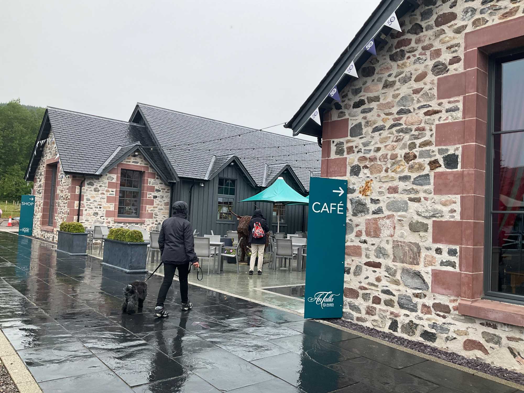 Une pause "pipitoresque" nous a permis de voir notre première vache Highland, qu'elle est jolie la roussette avec ses cheveux dans la face, mais on vous en reparlera demain. Puis nous voilà face à ce notoire attrait pittoresque : le Loch Ness. Ce plus grand réservoir d’eau douce de forme allongée, fait 39 km de long par 1.5 km à 3 km de large pour une profondeur maximale de 272 m. Avec 56,4 km carre, c'est le deuxième plus grand lac d'Écosse en superficie, après le loch Lomond où nous sommes passés précédemment.. Les nombreux adeptes du lancer léger s’y retrouvent pour la pêche saumon, brochet, lamproie de Planer et anguille d'Europe bien que le saumon se fasse plus rare. Un détail nous rapproche du moins techniquement de cette étendue d’eau par le fait que grâce à un système de pompes et de turbines, ses eaux sont utilisées pour produire de l'électricité. Peut-être pas de l’ampleur de Manic 5 mais un bon pas pour l’environnement. On distingue les ruines du château d'Urquhart, celui-là même qui compte parmi les plus beaux châteaux d’Écosse après Édimbourg et Stirling . Et oui, un autre! Fondé à l’emplacement d’une forteresse du Haut Moyen Âge, situé sur un promontoire rocheux en bordure du Loch Ness, ce château édifié au Xllle siècle au XVl e siècle, après avoir traversé les différentes guerres, a pris l’appartenance d’un château royal mais poursuivant son enfilade de guerre et de destruction.