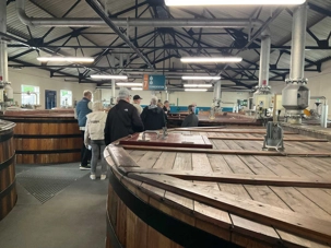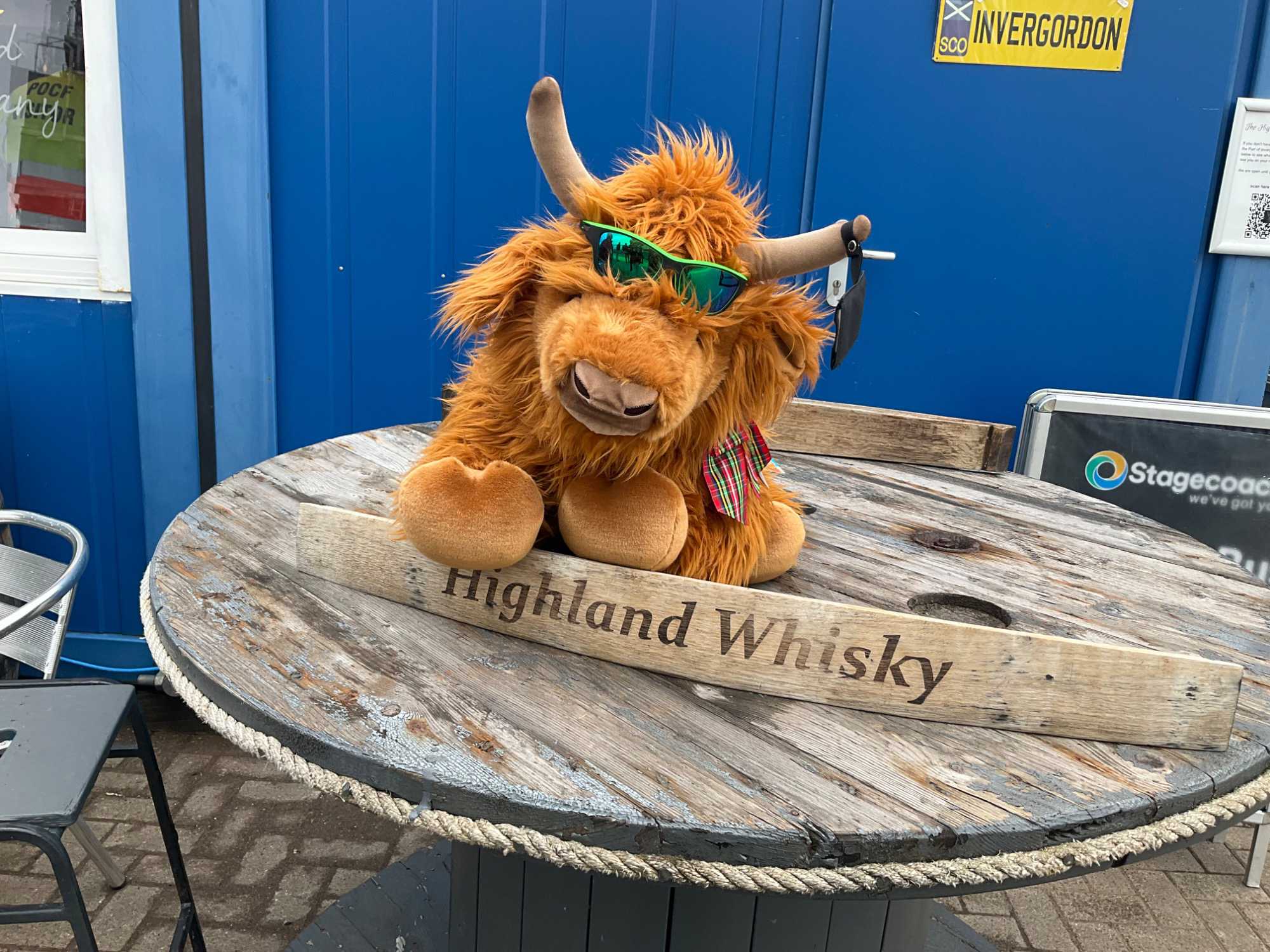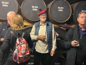 Puisque l' Écosse compte plus de 150 distilleries et que la région des Highlands où nous sommes s'enorgueillit d'accueillir les meilleures, pourquoi ne pas en profiter avant d’entrer pour faire la visite de l’une d’entre elles. The Singleton of Glen Ord Distillery nous reçoit avec ses produits tous consacrés au whisky dont certains au goût de fumée par la tourbe. Une très sympathique visite guidée à travers chacune des sections de la distillerie a fait de nous des maîtres distillateurs ...ou presque. L'animateur, un passionné, a bien su décortiqué chacune des étapes de la fabrication de ce brevage des dieux. Les cuves immenses et les barils de chêne ont particulièrement retenus notre attention.On a vérifié et on a un de leur produit à la SAQ, le Singleton of Dufftown 12 ans, Single malt. Pas de doute que la prochaine fois que nos voyageurs passeront devant les étagères de whisky, ils auront un beau souvenir de leur visite et...de la dégustation de ce produit. Notre ami Jules avait même pris au sérieux cette visite avec son bérêt à carreaux et, sa fausse pipe, un "québécossais"!