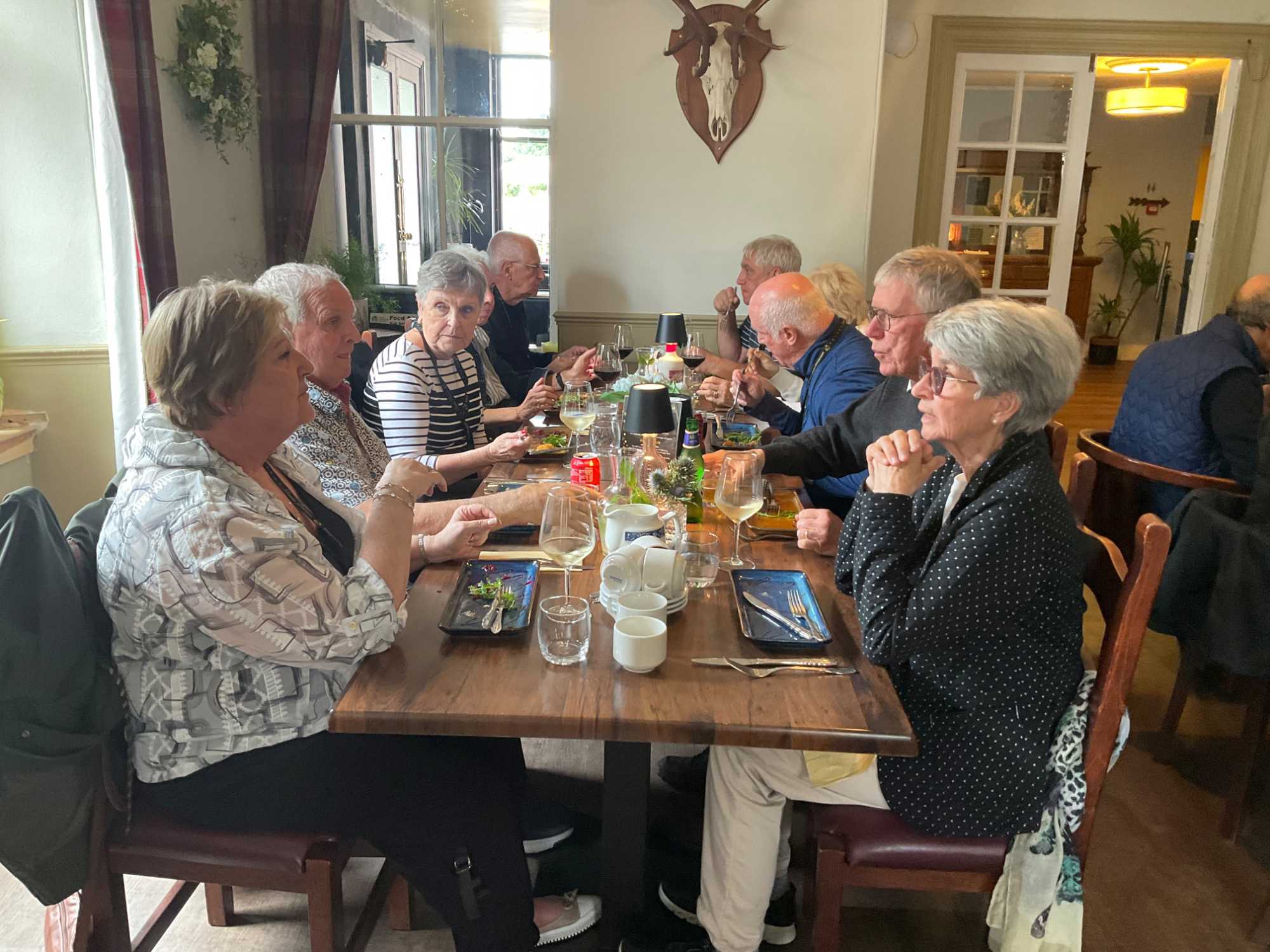 Nous avons eu droit à un succulent repas, toujours dans un vieil hôtel de la région dont la rusticité nous charme à tout coup. Une spécialité de poulet, enrobé de jambon et servi avec le fameux haggis nous a délecté.