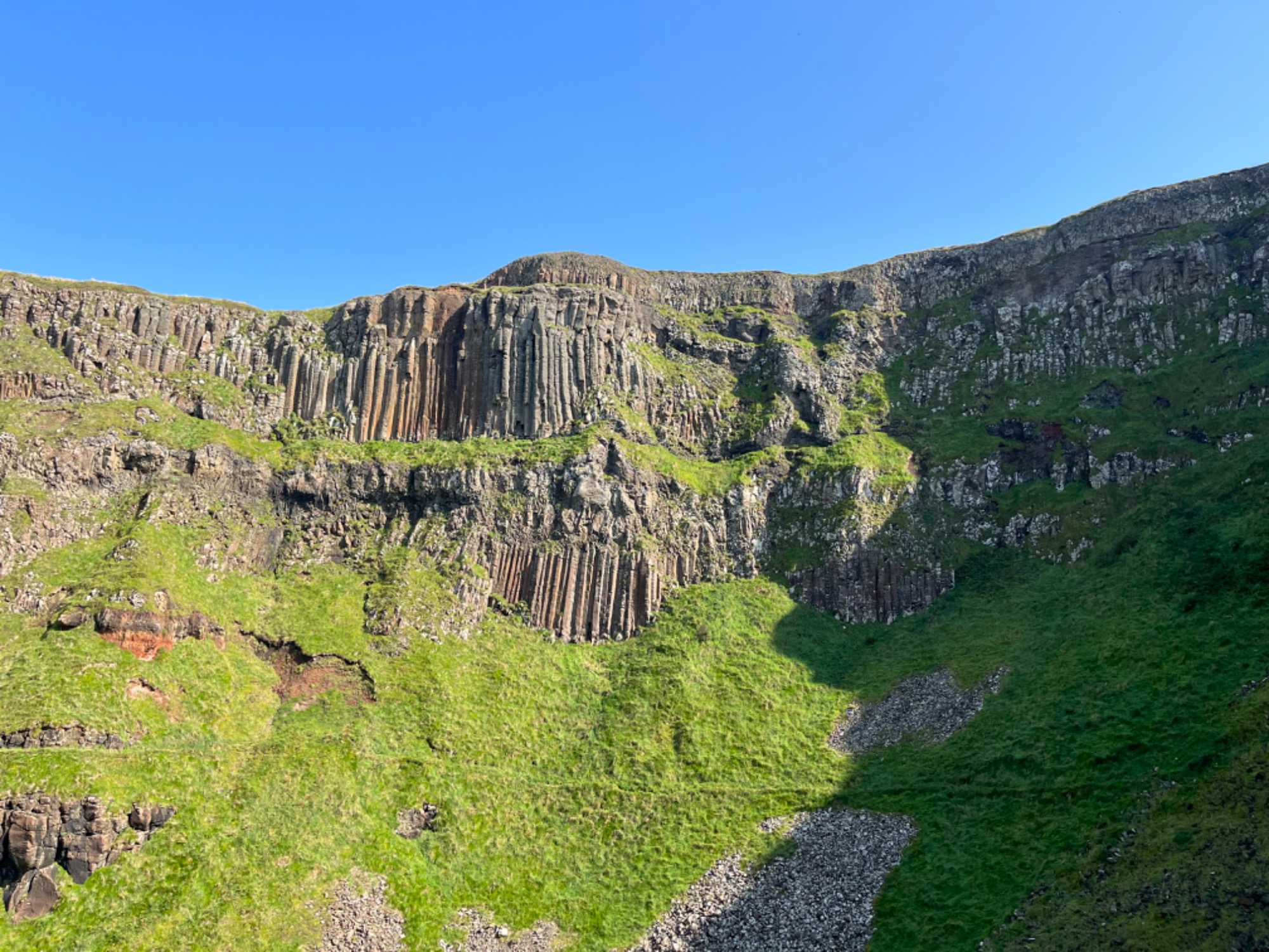 La Chaussée des Géants est une merveille de la nature. On y trouve un mélange de beauté et d’étrangeté. C’est un lieu mythique, la Chaussée des Géants a évidemment donné naissance à quelques légendes. Les falaises à proximité témoignent de plusieurs millions d’années d’activité géologique. Selon une légende populaire, Finn McCool, célèbre géant irlandais, aurait construit la chaussée pour aller se battre contre son rival Benandonner, un géant écossais. Mais ce dernier était plus grand qu’il ne pensait, alors, Finn McCool démolit vite la chaussée, ne laissant derrière lui que ces extrémités irrégulières sur la rive. Nous passons une heure et demie à découvrir ce beau parc naturel.