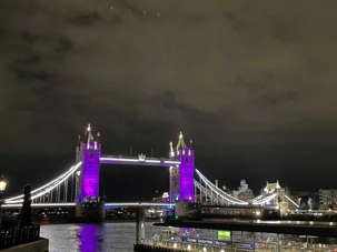 Nous logeons au Tower Hotel super bien situé au bord de la Tamise et au pied du Tower Bridge. Ce monument est connu dans le monde entier pour sa silhouette néo-gothique et son pont-levis construit entre 1886 et 1894. Sa longueur totale atteint 805 mètres. Reliées aux rives de la Tamise par deux ponts suspendus, les massives tours gothiques qui constituent l’armature sont unies entre elles par un pont routier formant pont-levis et, à l’étage supérieur à 42 mètres au-dessus de la Tamise, par une passerelle pour piétons équipée d’un plancher en verre offrant des vues panoramiques