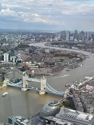 Fish n chips au menu, bienvenue en Angleterre! Après un court arrêt à l'hôtel nous poursuivons notre journée au Shard. Un magnifique édifice ou nous montons voir la vue au 72ème étage. Nous sommes chanceux, pas de nuages, pas de brouillard, une vue époustouflante. On aperçoit même la file immense de gens qui s’étend sur plusieurs kilomètres, pour rendre hommage à la reine à Westminster Abbey. Impressionnant!