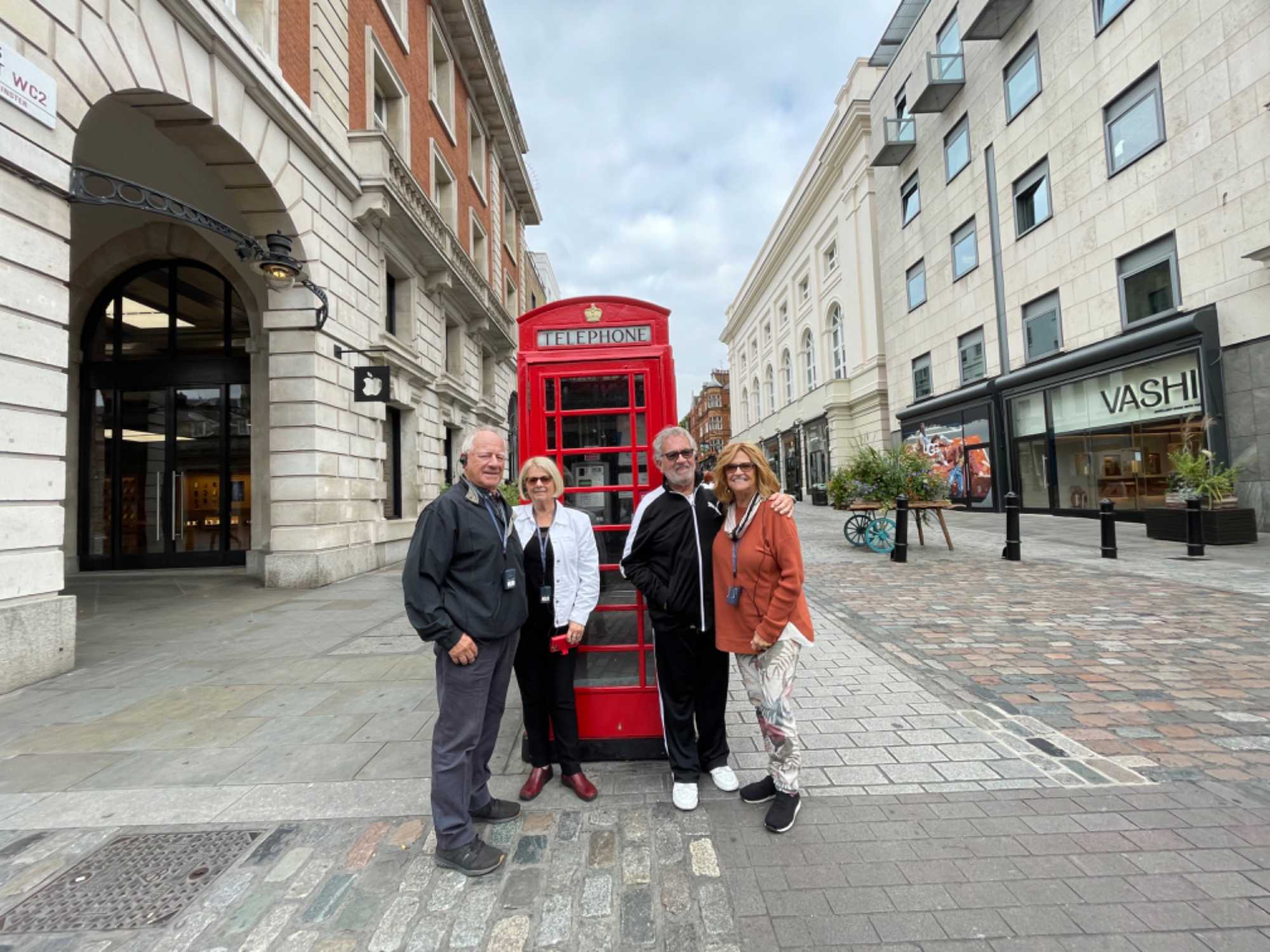 Après notre vol, nous prenons le bus pour une visite panoramique de Londres. Notre guide David Milton nous accompagne. C'est un excellent guide, cultivé et avec le sens de l’humour British et en plus il parle un excellent français. La journée est un peu nuageuse et la température est confortable autour de 20. Chemin faisant, nous remarquons le trafic et les nombreux policiers ainsi que plusieurs barricades érigées pour permettre les cérémonies qui se tiennent en l’honneur de la reine Elizabeth 2, décédée le 8 septembre. Notre guide nous explique l’ordre de succession et le rôle politique du roi Charles III. Nous faisons un arrêt à Covent Garden, un charmant marché agrémenté de nombreux restaurants et cafés, histoire de se délier les jambes et pour certains de prendre une collation.