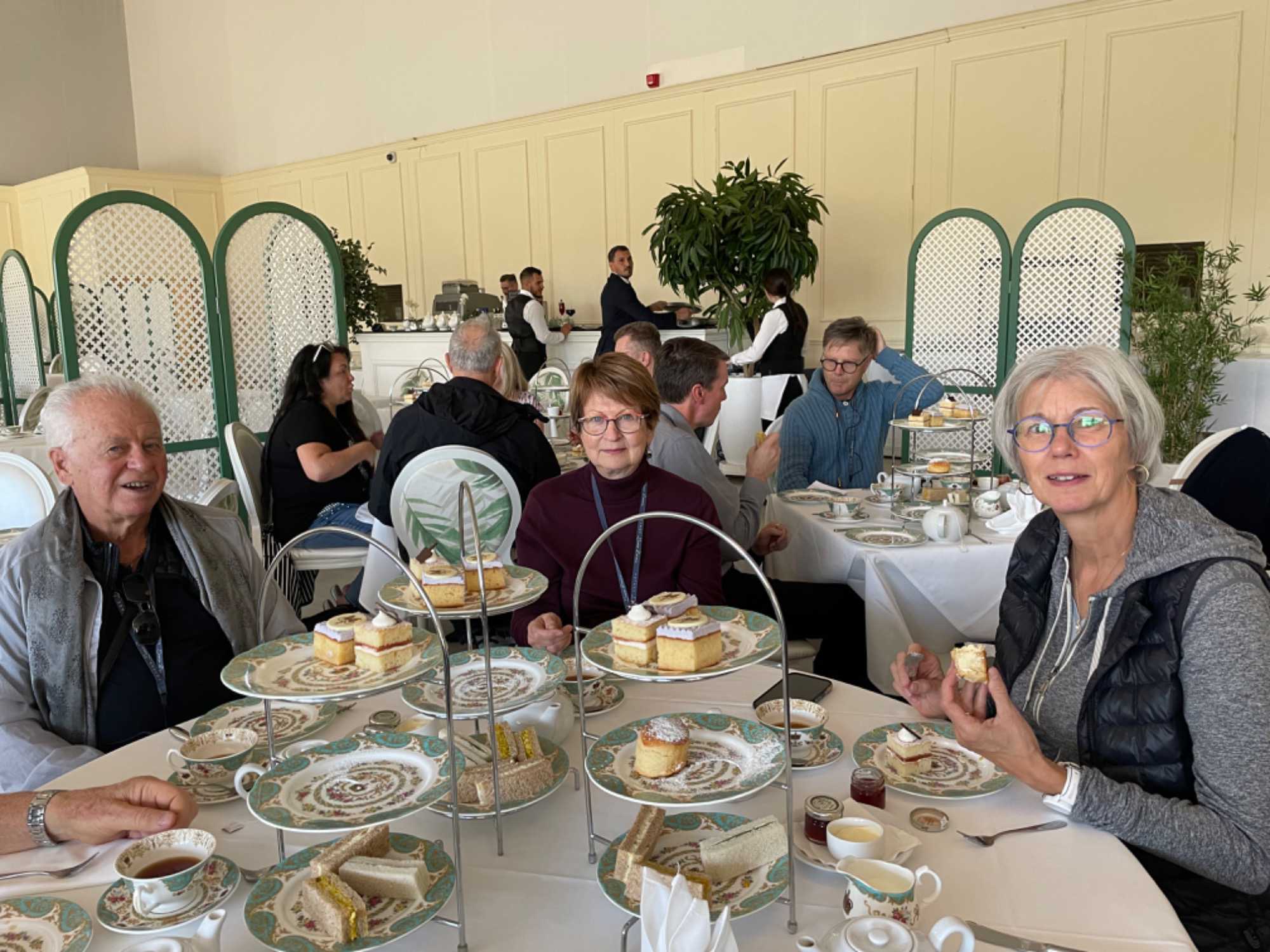 Ensuite, cap sur le Palais de Kensington. Bien que le palais soit ouvert aux visites, les fenêtres sont couvertes d’une toile semi opaque noire en respect pour le deuil d'Elisabeth 2. On y voit les appartements de divers monarques qui y ont habité, ainsi qu’une exposition photo de plusieurs membres de la famille royale qui y ont séjourné, tels le prince William et ses enfants, les princesse Margaret et Diana. On conclut par le High Tea dans l’orangeraie. Heureusement, le souper de ce soir sera à 20h car c’était très copieux!