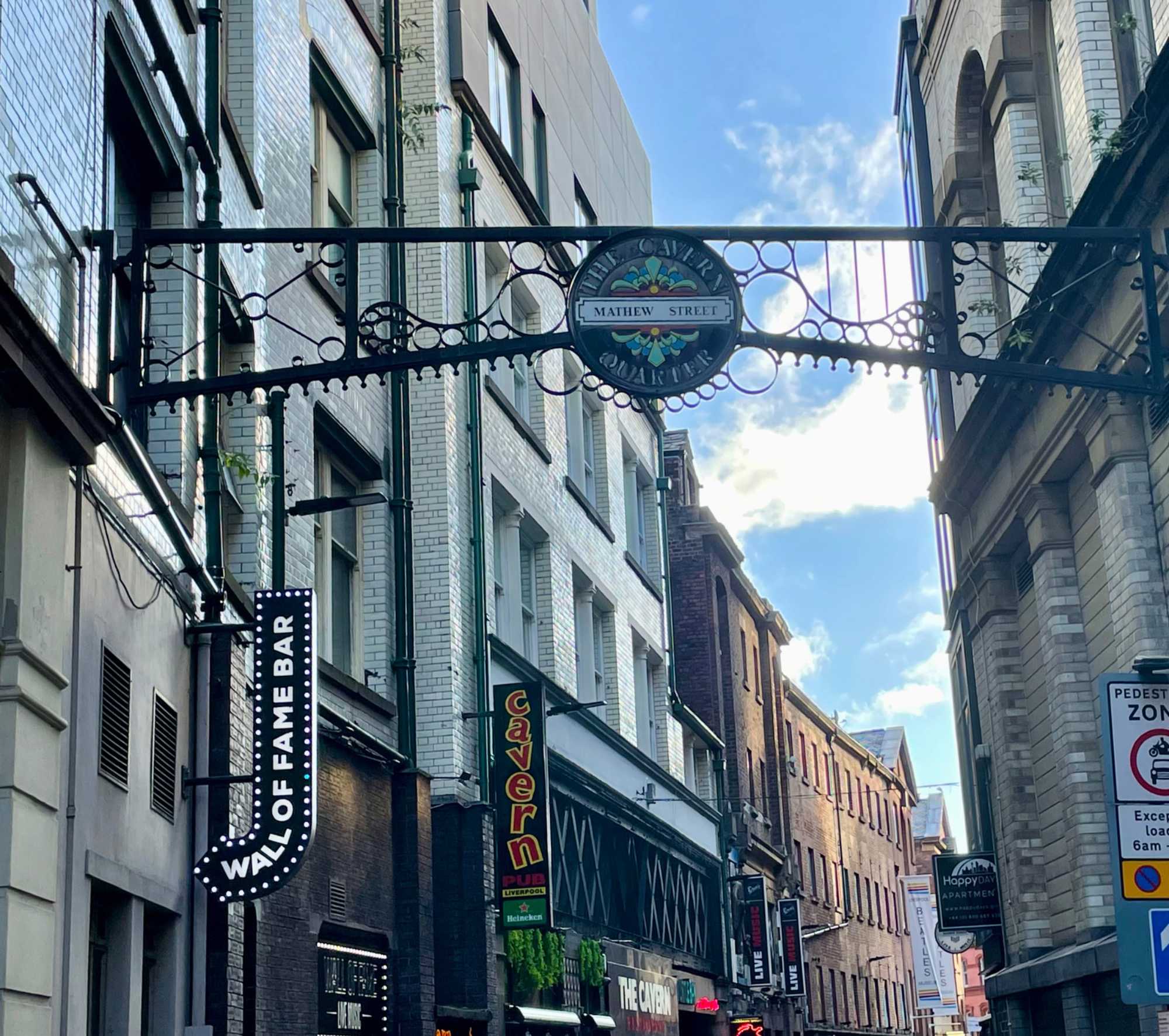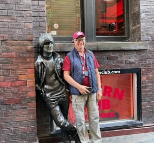 Nous rejoignons à terre notre guide Marie Passey et le chauffeur Fitch. La visite débute par Matthew Street, qui est la rue la plus importante de la ville pour plusieurs visiteurs. C’est la fameuse rue du Cavern Club où les Beatles se sont produits plus de 400 fois, au grand bonheur de leurs fans. La rue est remplie de statues et de magasins à l’effigie des Beatles. Comme il est tôt, on a tout le loisir d’admirer les vitrines et de prendre des photos avant les foules habituelles ici.
