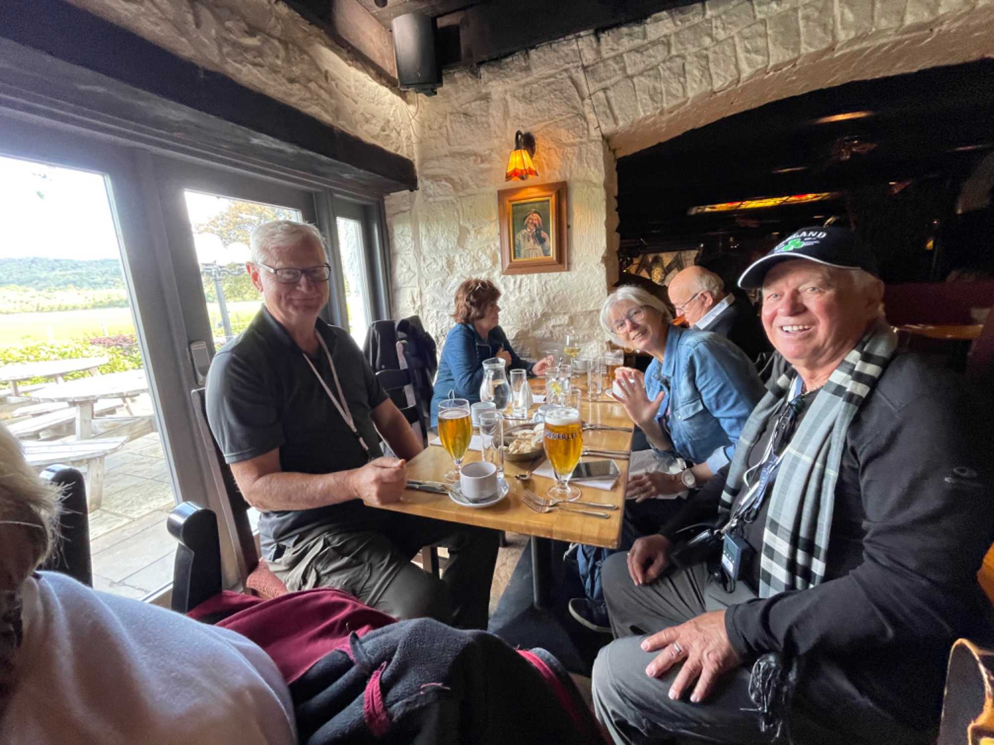 On s'arrête dîner au Bird and the Bees, restaurant typique, où on nous sert une entrée de Haggis, le plat traditionnel écossais, fait de viande d’agneau et de panse de mouton. Certains en profitent pour goûter la Cask Ale, bière typique de l’Écosse, qui est brassée à partir d’ingrédients traditionnels, mûrie par fermentation secondaire dans le récipient à partir duquel elle sera distribuée et pompée, sans ajout de dioxyde de carbone.