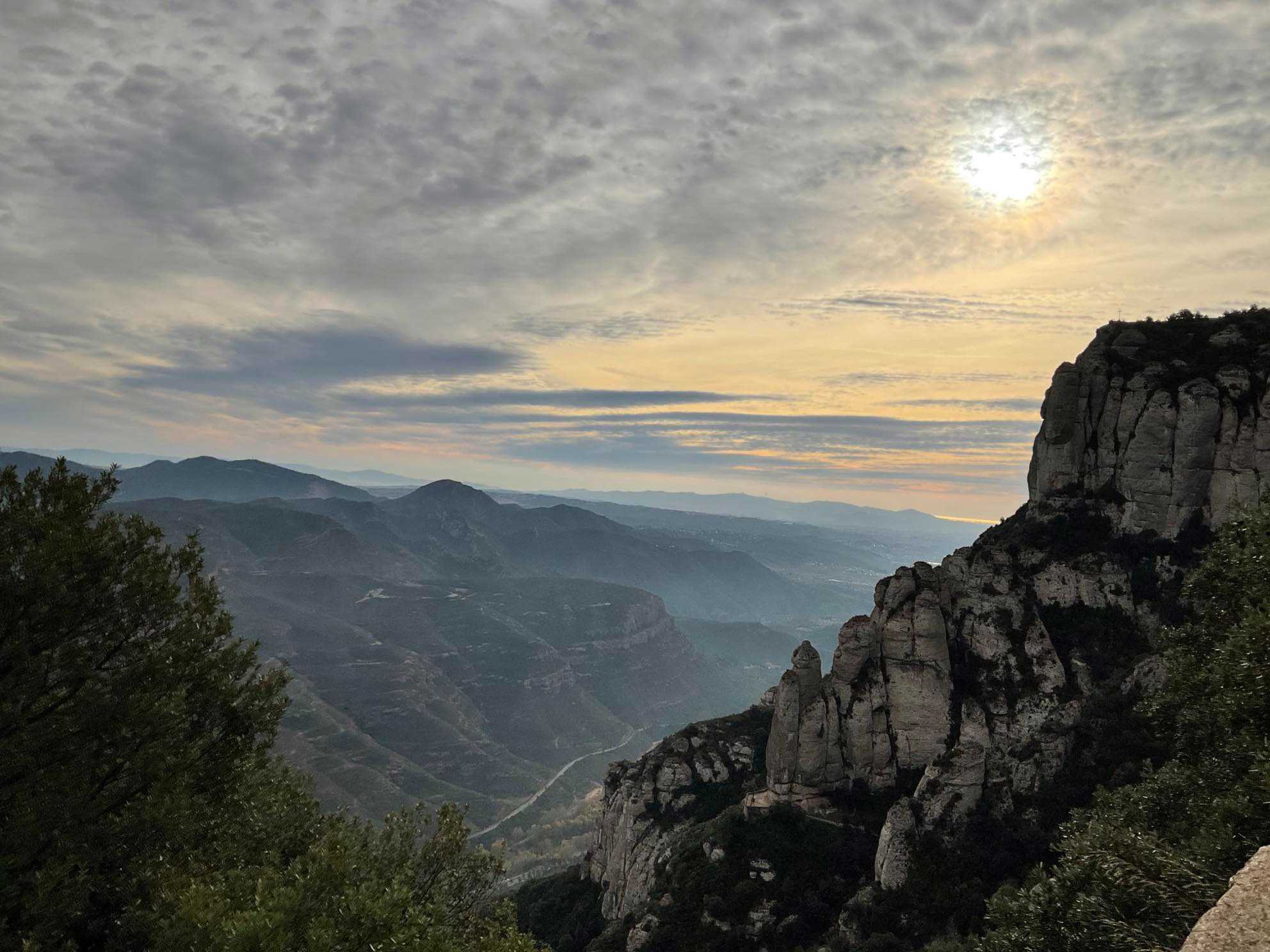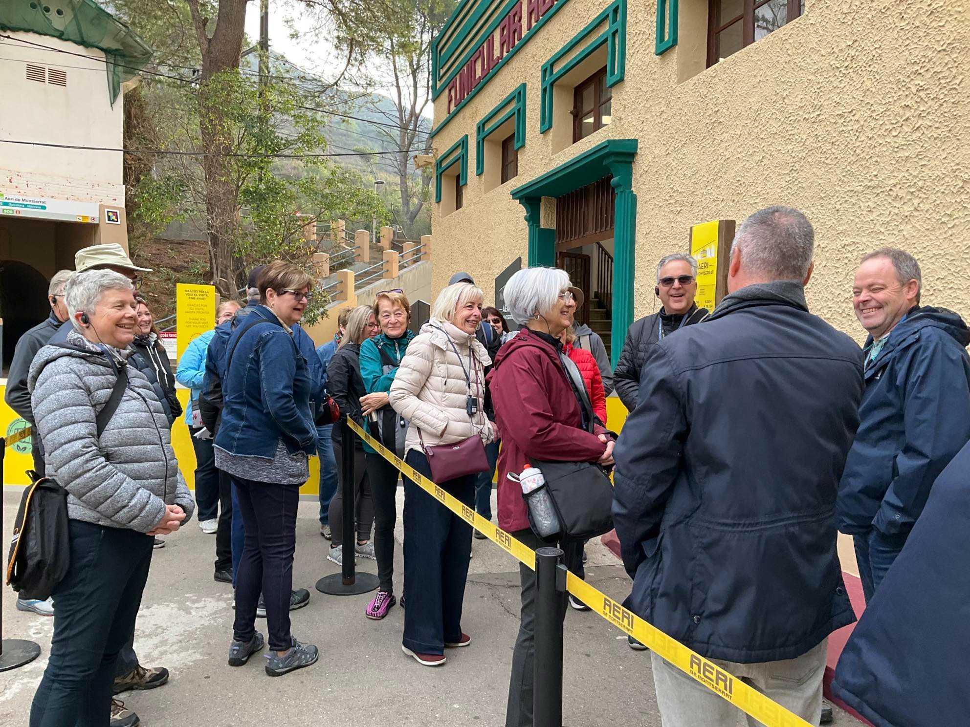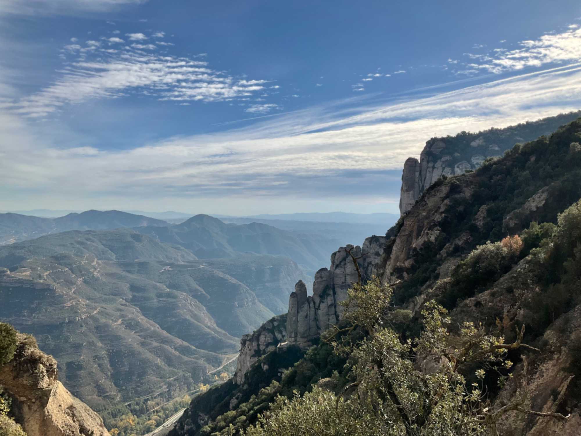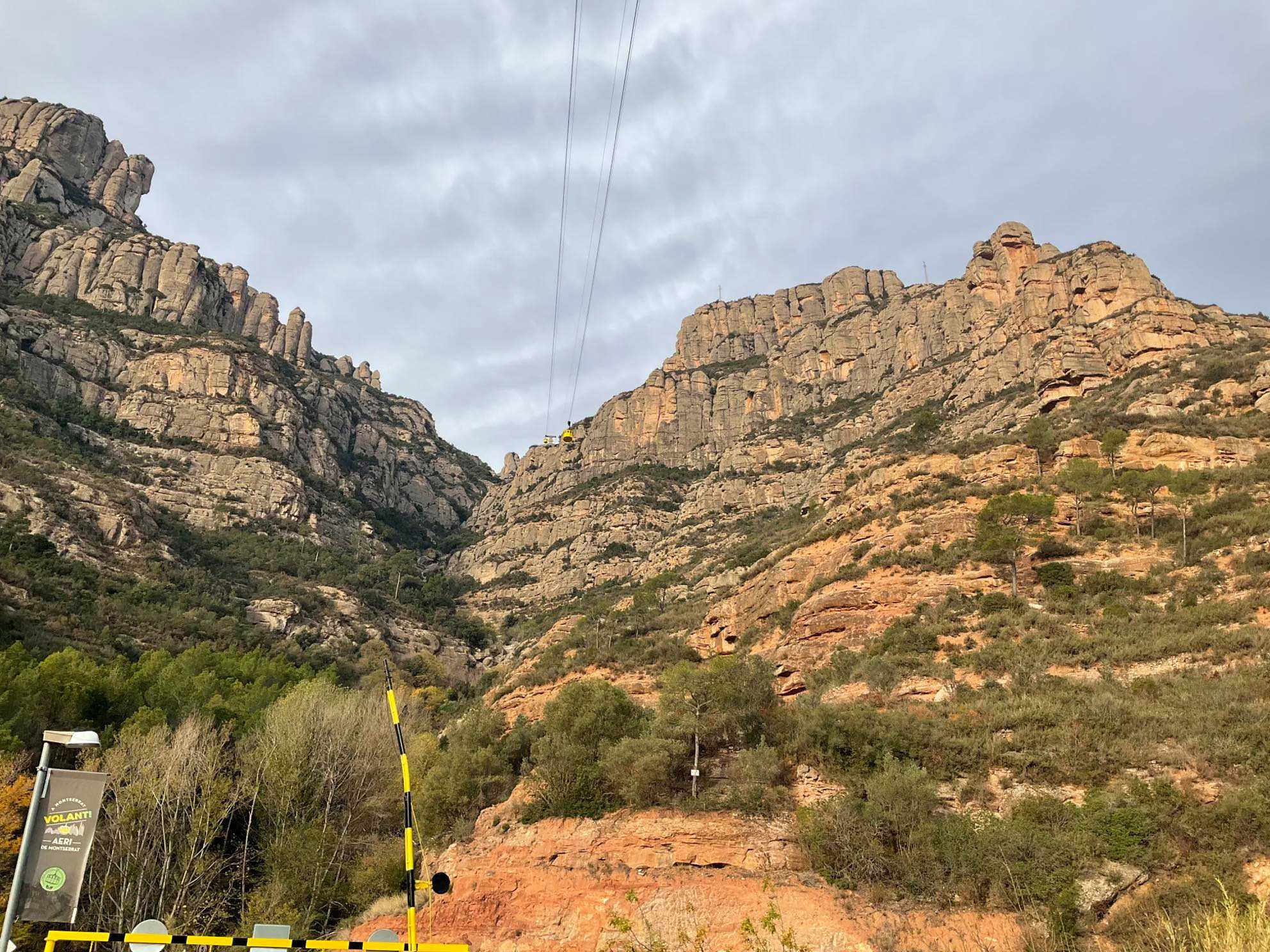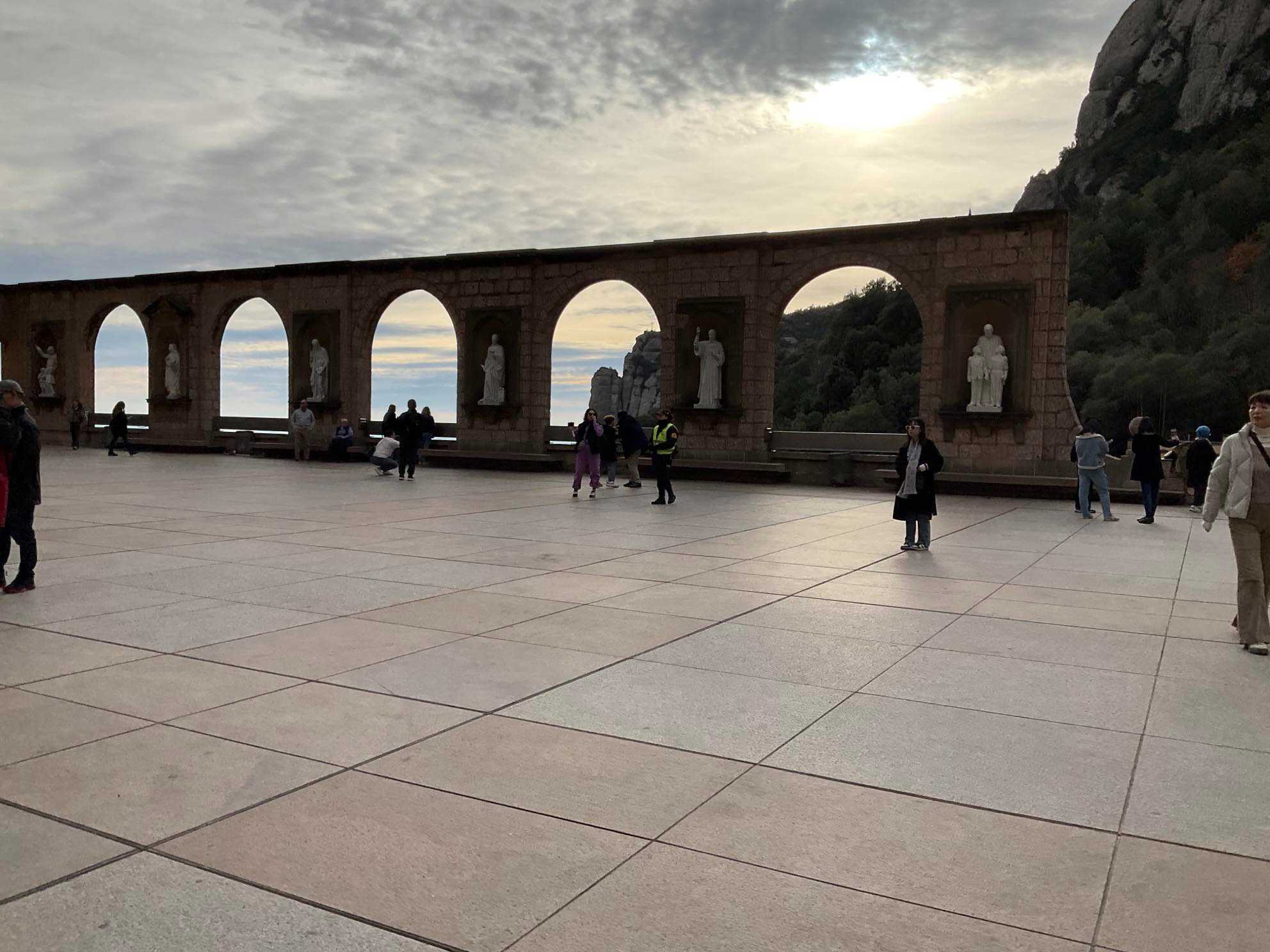 Avec notre chauffeur du jour, Emilio, la route à travers les vignobles de Penedès, nous appelle vers Montserrat situé dans un parc naturel à 60 km à l’ouest de Barcelone. Le surnom de cet amas de montagnes se nomme « la montagne sciée » à cause de ses pics très abruptes et très rapprochés. Nous nous sommes dégourdis les jambes en traversant le pont pour aller prendre le funiculaire. Tout le groupe, caméra en mains, immortalise le superbe paysage devant nous pendant la montée, il faut le dire, vertigineuse. J’ai bien essayé de laisser ma place à Linda mais elle a préféré demeurer au centre, yeux baissés; à chacun sa phobie!
