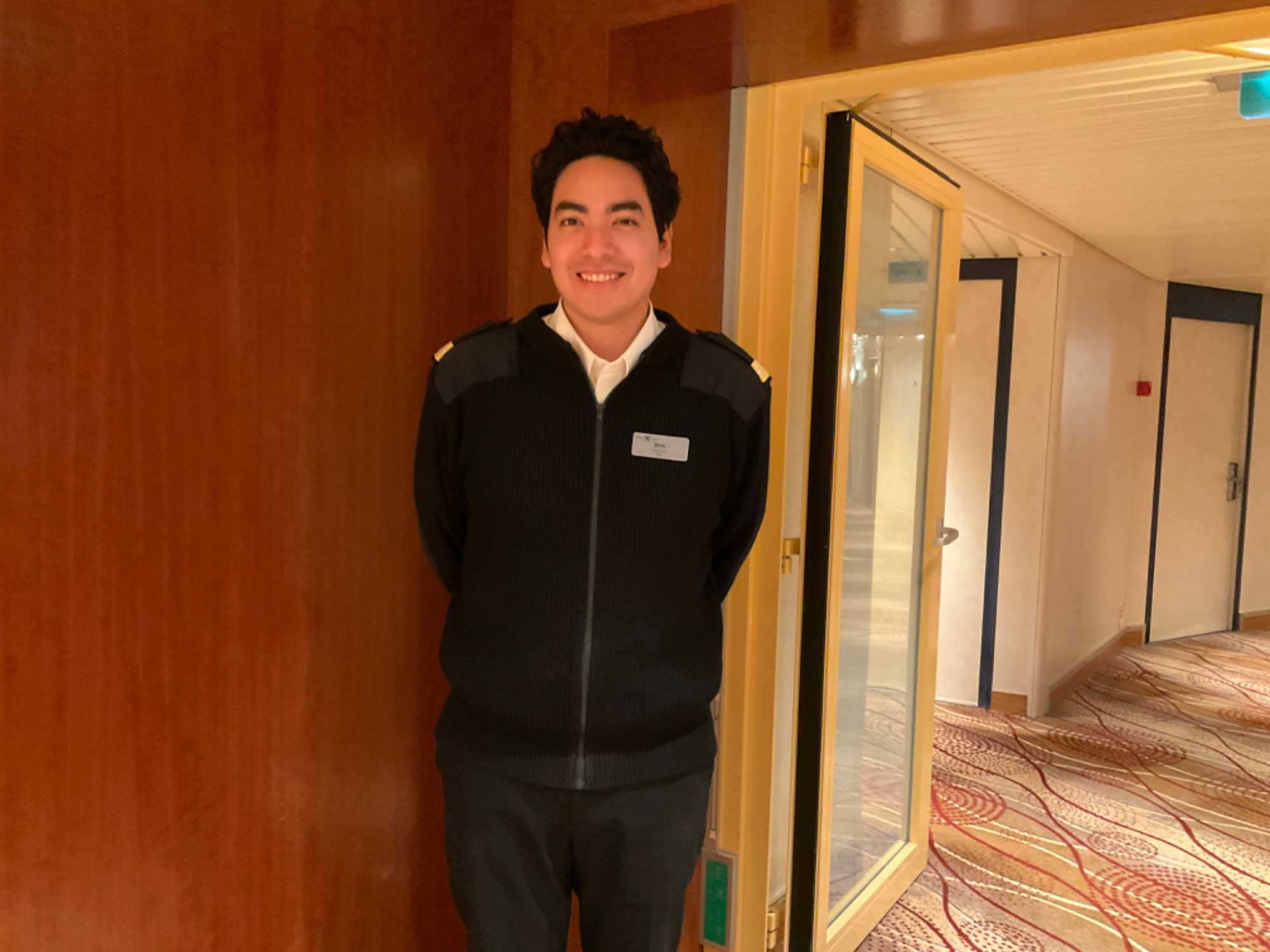 On ne voie personne, sieste généralisée je crois. Oh il y a bien eu François qui s’est entraîné au gym. Serge, une des Lucie (sa compagne), Linda notre voyageuse solo et, votre accompagnatrice ont fait plusieurs tours de piste à la marche. Ah oui, Nathalie et Guy ont opté pour “la totale”. En effet, ils ont effectué une visite guidée complète des différents départements du navire : cuisine, buanderie, salle des machines, et le poste de navigation. Voyez vous-mêmes: en photos ça semble très instructif et rassurant comme visite. On nous dit que l’accent prioritaire? La sécurité.