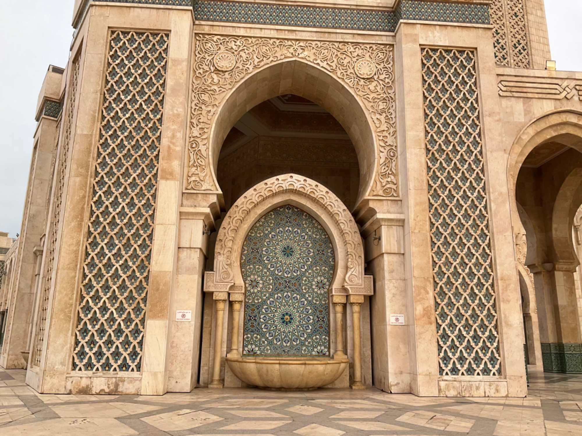 Enfin, la mosquée Hassan II se classe troisième au monde pour sa superficie. Débutée en 1986, il a fallu 7 ans pour la construire, 8500 artisans, 2500 ouvriers, 80 millions d’heures et …500 millions de dollars canadiens.