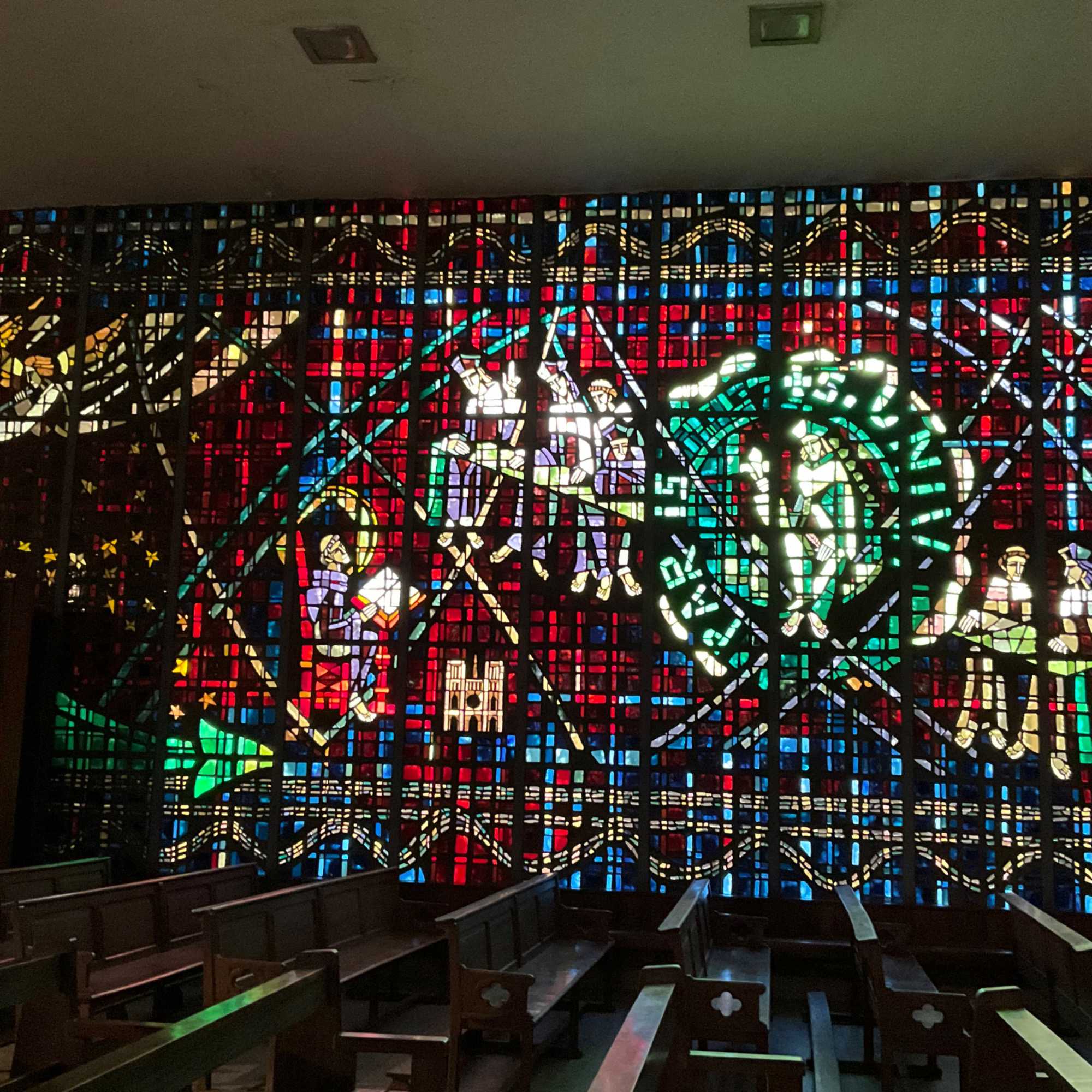 Une visite vite faite nous conduit à l’église Notre-Dame de Lourdes pour jeter un œil à ses magnifiques vitraux et à sa petite grotte dans la pierre comme les autres Notre-Dame de Lourdes ailleurs sur la planète. On dit aussi que sa petite église serait une réplique en miniature de Notre-Dame de Paris.