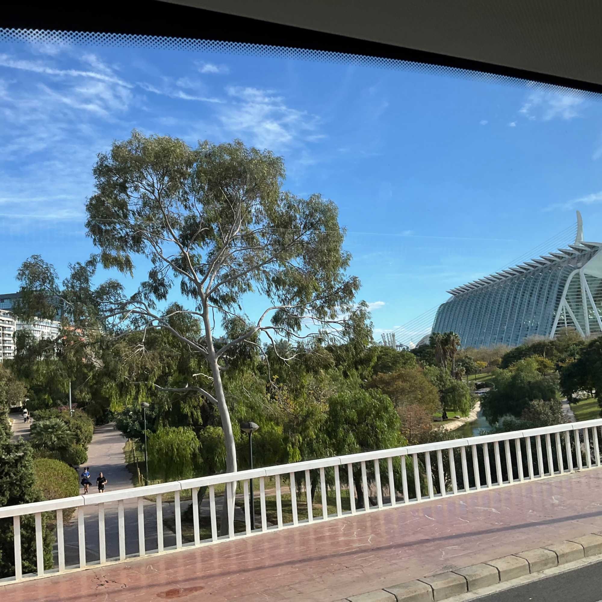 Il y a l’Océanografic qui est le plus grand aquarium d’europe, l’Hemisfèric ou, cinéma en 3 D, le gigantesque Musée des sciences où le slogan est Défense de ne …pas toucher, le Palais des arts avec ses programmes d’opéra (240 millions d’euro) et autres, l’Umbracle avec son gigantesque jardin de plus de 17 000 mètres carrés, l’Agora avec ses expositions temporaires, et le magnifique le Pont de l’Assut d’Or qui traverse l’ancien lit du fleuve Turia entre le Musée des Sciences et l’Agora. Il dispose de plusieurs voies de circulation dans les deux sens, et au milieu se trouve une passerelle piétonne reliant les deux rives du Jardin du Turia.
