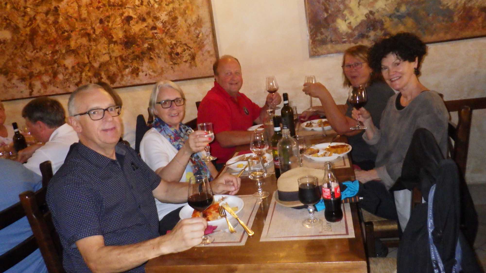 Et la marche ouvre l’appétit, c’est de bon cœur que nous rentrons à l’hôtel pour souper. Ça discute allègrement autour d’un bon repas et d’un bon Chianti. L’ambiance est à la fête malgré la fatigue et nous savons déjà que nous avons un super groupe! Après cette journée si bien remplie de belles découvertes, nous n’aurons aucune difficulté à fermer l’œil !