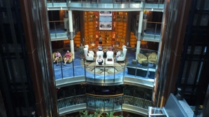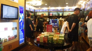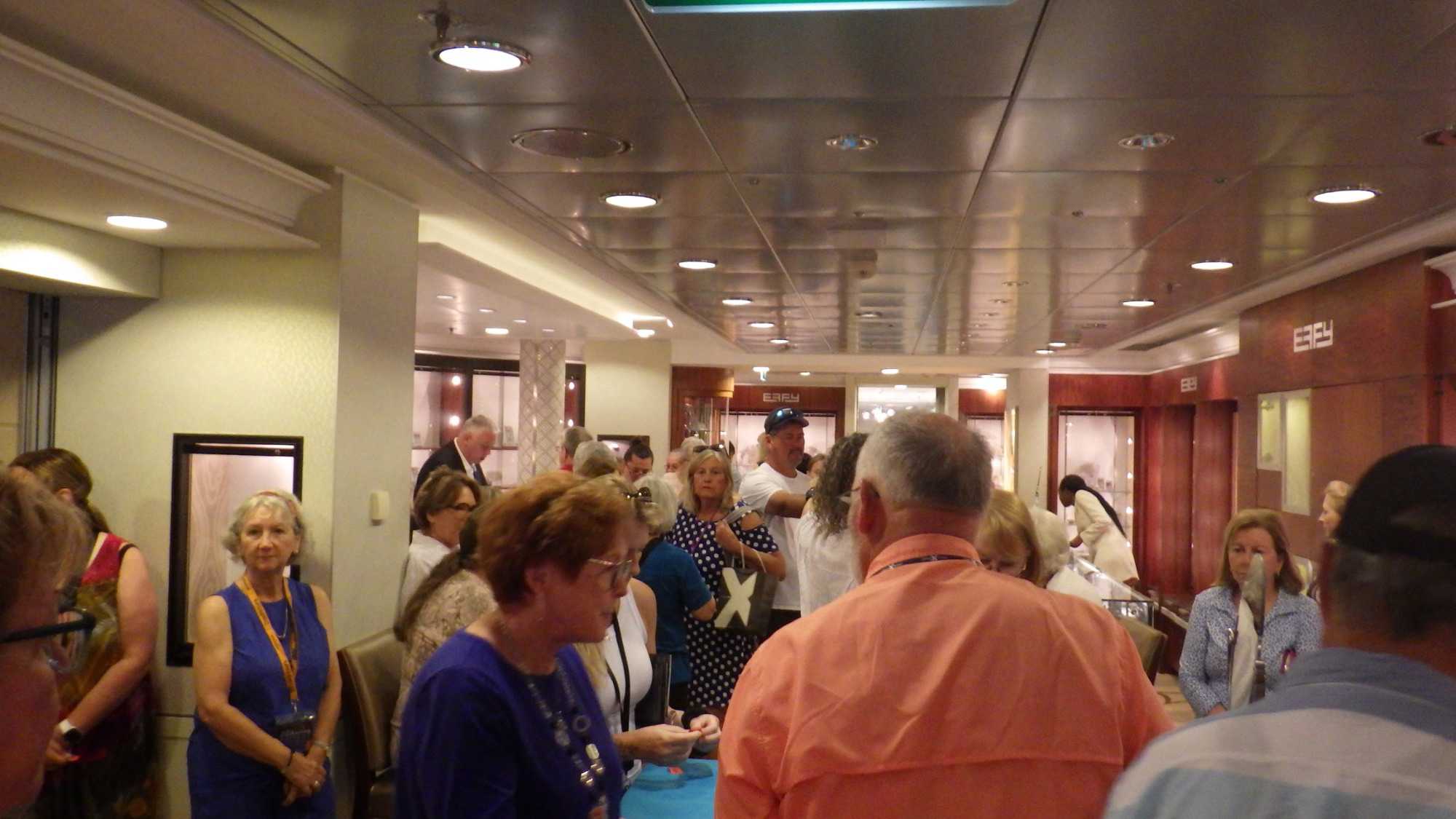 Beaucoup d’activités sont au programme aujourd’hui et pas besoin d’avoir le pied marin puisque la mer est calme et sans vagues, le bateau fait son petit bonhomme de chemin dans l’océan. Et tandis qu’on vogue tranquillement, pourquoi ne pas s’adonner à l’une des activités disponibles! C’est le moment idéal pour passer de la parole aux actes et s’offrir le petit collier, la bague ou le bracelet dont on rêve depuis des années; la vente de bijoux à bord fait toujours des heureux! Quoi d’autres? Pour celles qui veulent garder la forme et allonger la patte, marche réservée aux femmes avec fous rires à la clé. Vous aimez les compétitions amicales? Et bien, des tournois, on en offre à la bonne franquette : machines à sous, jeux de cartes, jeux de tables, ping-pong, longueurs de piscine, danses en ligne, billard, karaoké, ouf! Pour celles et ceux qui veulent se reposer des marches et des balades terrestres, quoi de mieux qu’un peu de farniente, soit un paisible bain de soleil à l’extérieur sur les ponts 14 et 15, une activité gagnante pour recharger ses batteries! Nombreux sont les voyageurs qui adorent ça! Et puis quand on a une petite soif, pourquoi ne pas se laisser tenter par un drink exotique, après tout on est en croisière et il est sûrement 17 h quelque part.