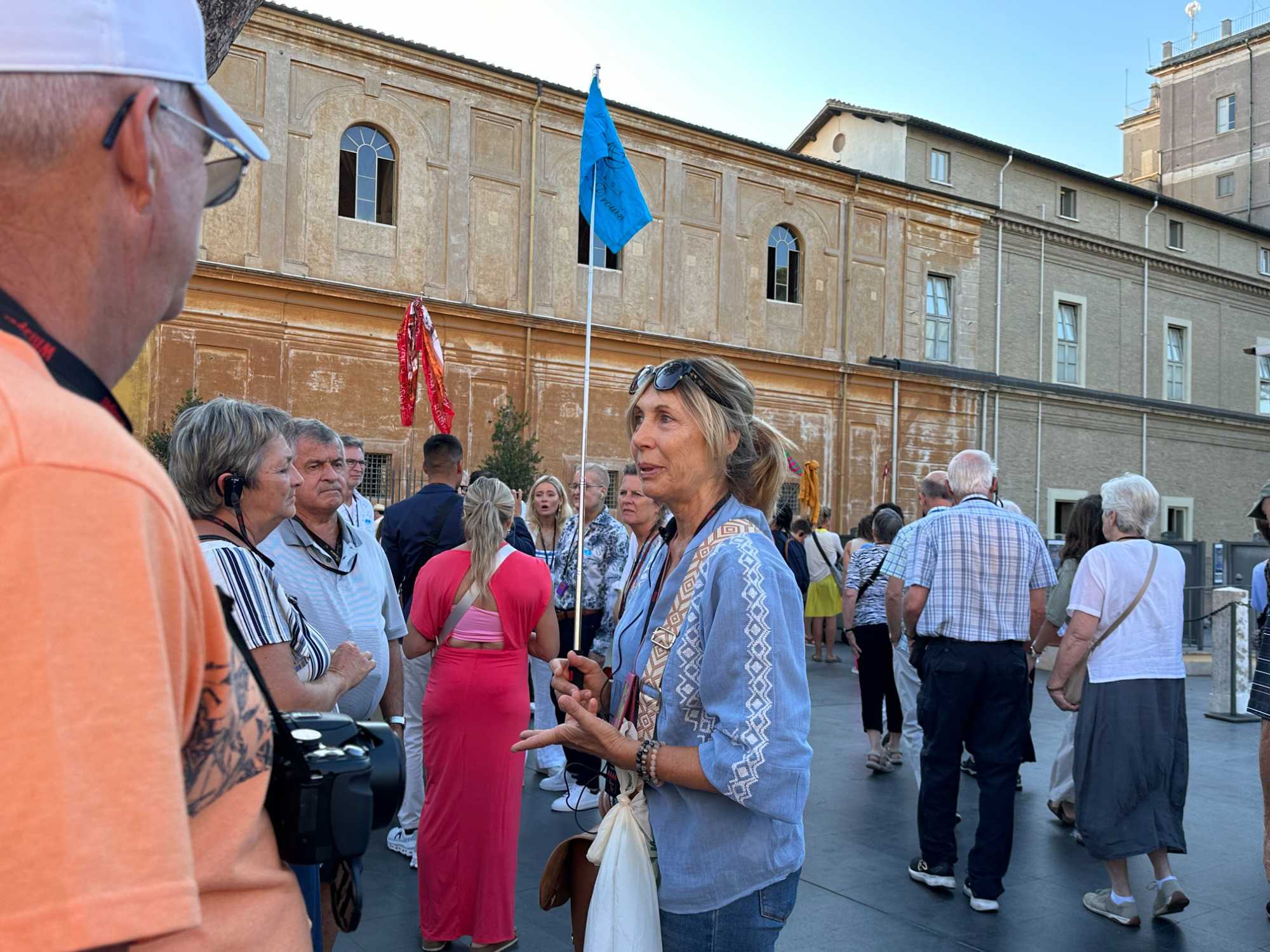 Retrouvons Stefania, qui nous conduit jusqu’à Francesca et Paola, nos guides du Vatican. Pour avoir le meilleur de leurs explications, le groupe est divisé en deux groupes de 17 personnes. C’est parfait et même mieux car nous ne manquons absolument rien des informations précieuses qu’elles nous procurent à travers les écouteurs, et ce, tout au long de la visite.