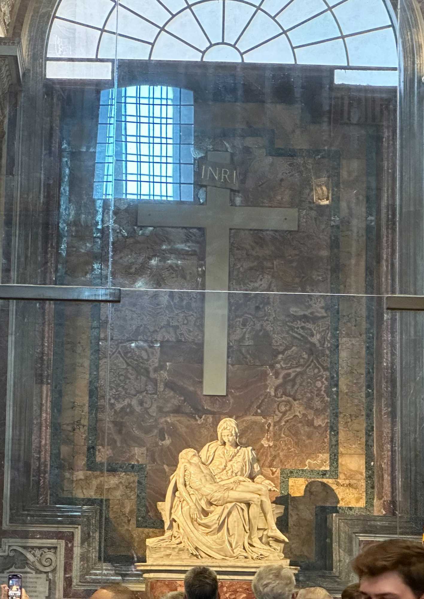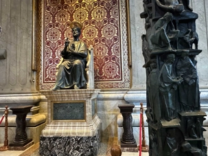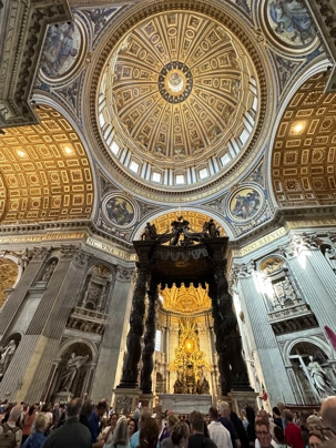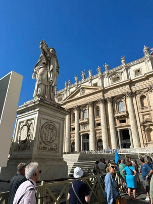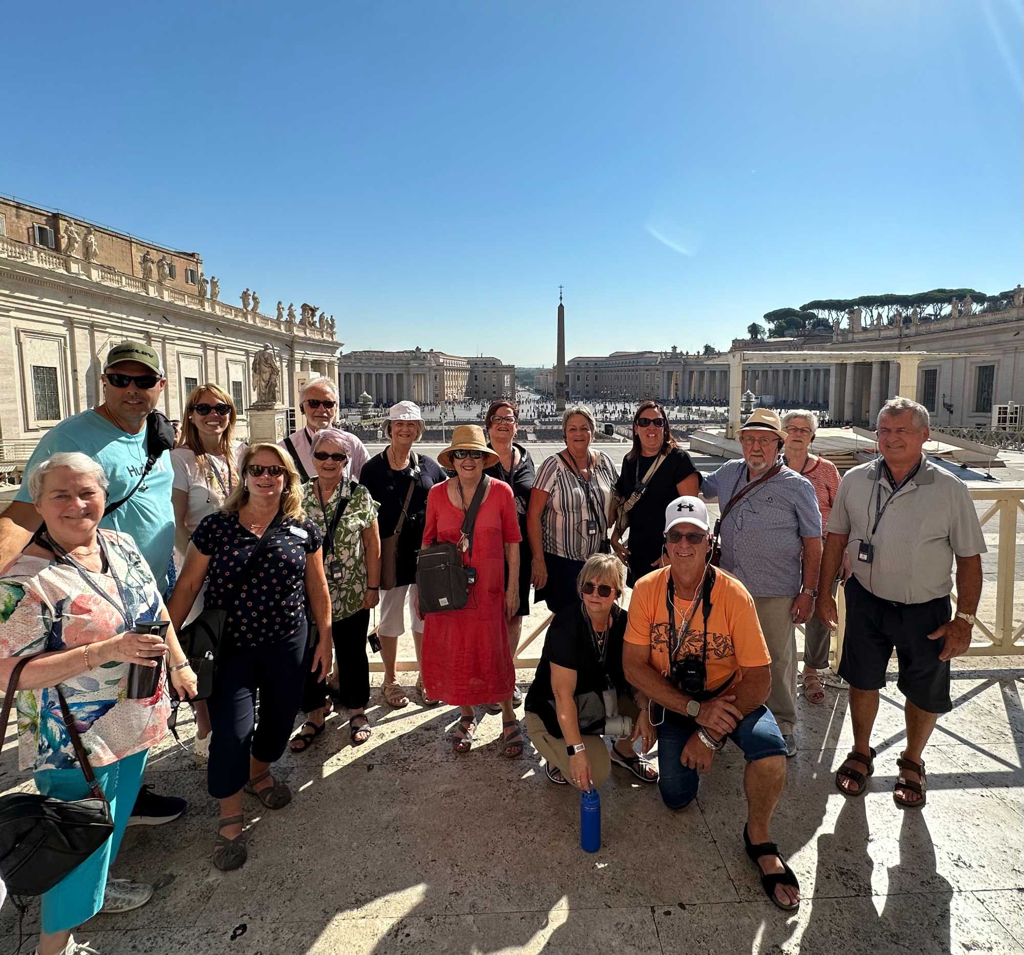 La dernière partie de la visite nous conduit à la Basilique Saint-Pierre de Rome, l’église principale du catholicisme, son centre spirituel et la plus grosse au monde. Elle n’est toutefois pas la cathédrale de Rome puisque c’est Saint-Jean de Latran qui assure cette fonction. L’architecture de la basilique St-Pierre, sa beauté et sa richesse en font l’une des étapes incontournables d’un séjour à Rome. Elle est construite à l’emplacement du tombeau de Saint-Pierre. Plus d’un siècle fut nécessaire à sa construction (1506 à 1626) et les plus grands artistes de la Renaissance s’y succédèrent comme Raphaël et Michel-Ange qui réalisa la grande coupole. Il est à noter que la basilique n’a pas de clocher puisque le premier s’effondra à la suite d’une erreur de calcul de Bernini qui était responsable de la construction de deux clochers. Cinq portes donnent accès à la basilique, dont la Porte Sainte à 16 panneaux de bronze datant de 1950, qui n’est ouverte que lors des années Saintes. La prochaine année sainte sera en 2025. L’intérieur est impressionnant, grandiose, monumental. La décoration est d’une très grande richesse, de style baroque. Le sol et les murs sont couverts de marbre. Quatre piliers monumentaux séparent les 3 nefs. On y retrouve aussi de nombreuses sculptures dont la célèbre Pietà de Michel-Ange taillée dans un seul bloc de marbre. Cette portion est maintenant protégée par une vitre anti-balle car en 1972, un forcené s’en est prit à la statue avec un marteau et l’a endommagée en une dizaine d'endroits, cassant notamment le bras gauche d'un coup sec, le bout du nez. mutilant la joue gauche, le menton, le front et le voile du côté gauche. On y retrouve aussi des tableaux de grands peintres. Difficile de décrire le gigantisme de cette œuvre architecturale de même que celle de la Place St-Pierre qui lui fait face. Tous sont impressionnés ! Malgré le temps qui semble s’être arrêté dans ce lieu si particulier et si grandiose, quoi qu’on en dise, c’est déjà l’heure se rendre à Civitavecchia rejoindre le magnifique Reflection de Celebrity Cruise qui nous attend pour l’embarquement d’une croisière que nous savons déjà mémorable ! Le temps de remercier chaleureusement Francesca et Paola, mais surtout Stefania que nous avons trop peu connu, mais beaucoup apprécié !