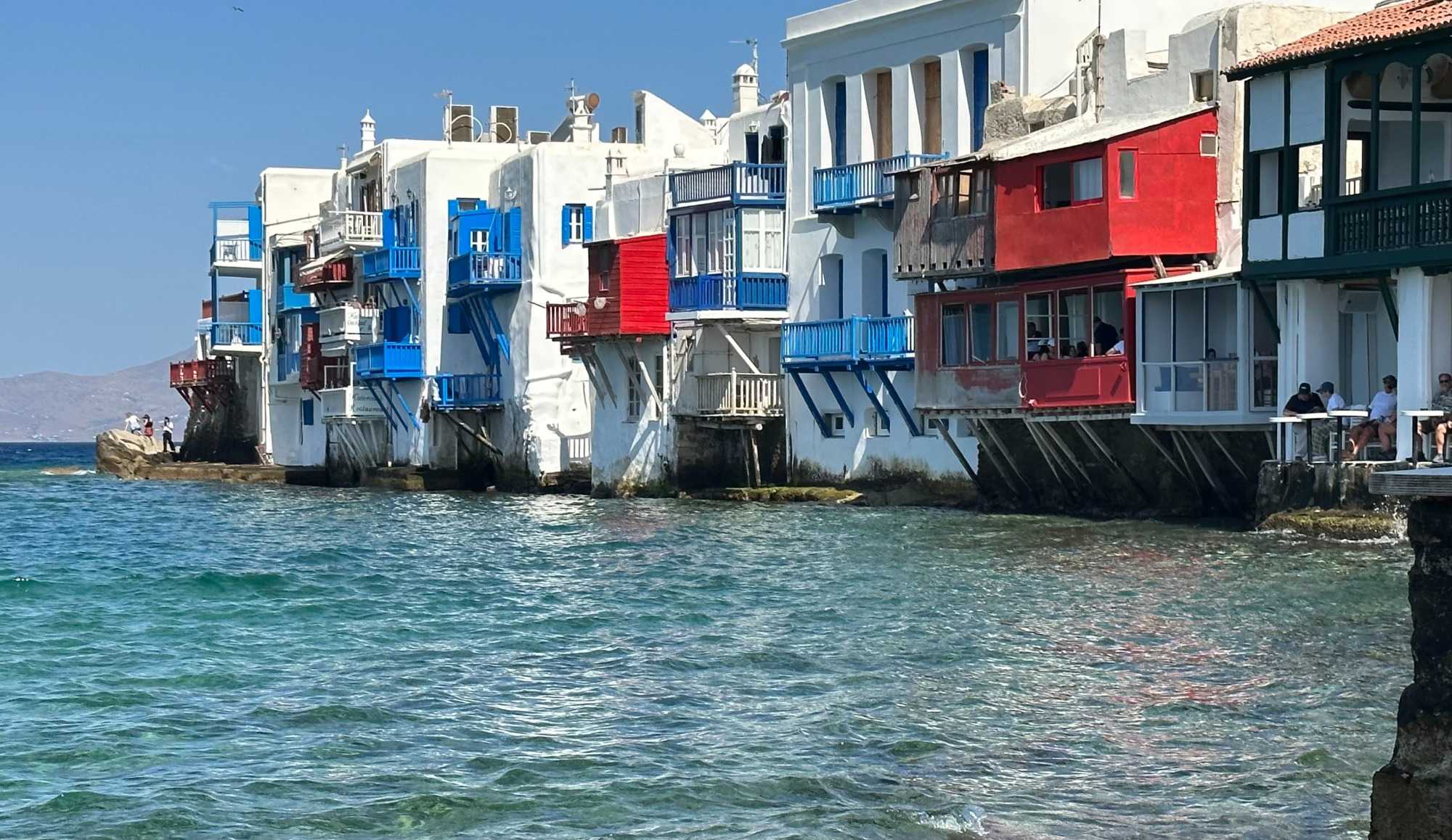Vedette incontestable du tourisme en Grèce, Mykonos ne l’est pas par hasard. Son village étincelant de blancheur, coiffée de ses célèbres moulins à vent , ses plages paradisiaques et ses soirées endiablées sont la recette de son succès. Ses ruelles forment un labyrinthe destiné à l’origine à perdre les pirates, mais qui fait maintenant le bonheur des visiteurs et surtout des commerçants! Le port garde une activité traditionnelle avec ses pêcheurs qui vendent leurs poissons sur les quais. Le quartier de « la petite Venise » est un endroit particulièrement romantique au coucher du soleil. Avec près d’un million de visiteurs chaque année, l’île est sans contredit la destination phare du pays.