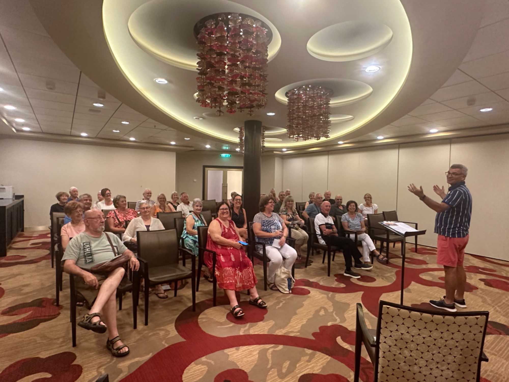 Un pur hasard qui fait bien les choses ; une journée plutôt grise alors que nous sommes en mer ! S’il y a une journée qui peut se permettre d’être maussade côté météo, c’est bien aujourd’hui !! Nous devons faire nos valises pour rentrer car c’est notre dernière journée en mer. Le Reflection est maintenant bien au large en Méditerranée, file a 20 nœuds en direction nord-ouest au sud des côtes de la Sardaigne, une magnifique île d’Italie que nous vous souhaitons de visiter un jour ! Une autre journée à naviguer allègrement, cette fois-ci vers Barcelone. Au programme: farniente, bavarder en sirotant notre Xème café, roupillonner au bord de la piscine ou sur le balcon, lire ce livre qu’on s’était promis de finir. C’est aussi avec regret que nous devons faire la valise car le débarquement approche. Mais n’en parlons pas tout de suite. Faisons durer le plaisir !! La mer aura été d’un calme surprenant durant toute la croisière! Nous sommes vraiment chanceux! Nous avons bien pris nos aises sur le bateau et le temps semble s’arrêter! En après-midi nous nous rencontrons à la salle de conférence du bateau pour donner les informations utiles afin que le débarquement se passe comme sur des roulettes. Puis à l’heure de l’apéro, le barman du Martini bar nous offre un vrai spectacle à lui seul ! Dans une mise en scène digne d’Hollywood (j’exagère à peine !), debout sur le bar, encouragé par le clappement de la foule, il remplit une dizaine de verres à la fois de différentes couleurs de Martinis! Côté spectacle aussi, la présentation de ce soir au théâtre est toute en acrobaties! Magnifique, digne du cirque du Soleil! Les valises sont bouclées, nous les retrouverons demain matin. Comme il a été conseillé à la réunion d’information, nous avons bien pris soin de préparer les vêtements dont nous avons besoin pour la journée de demain. Personne ne veut être celle ou celui qui ferait le débarquement en pyjama faute d’avoir gardé d’autres vêtements en remettant sa valise au portier hier soir !! La légende dit que c’est déjà arrivé! Haha!