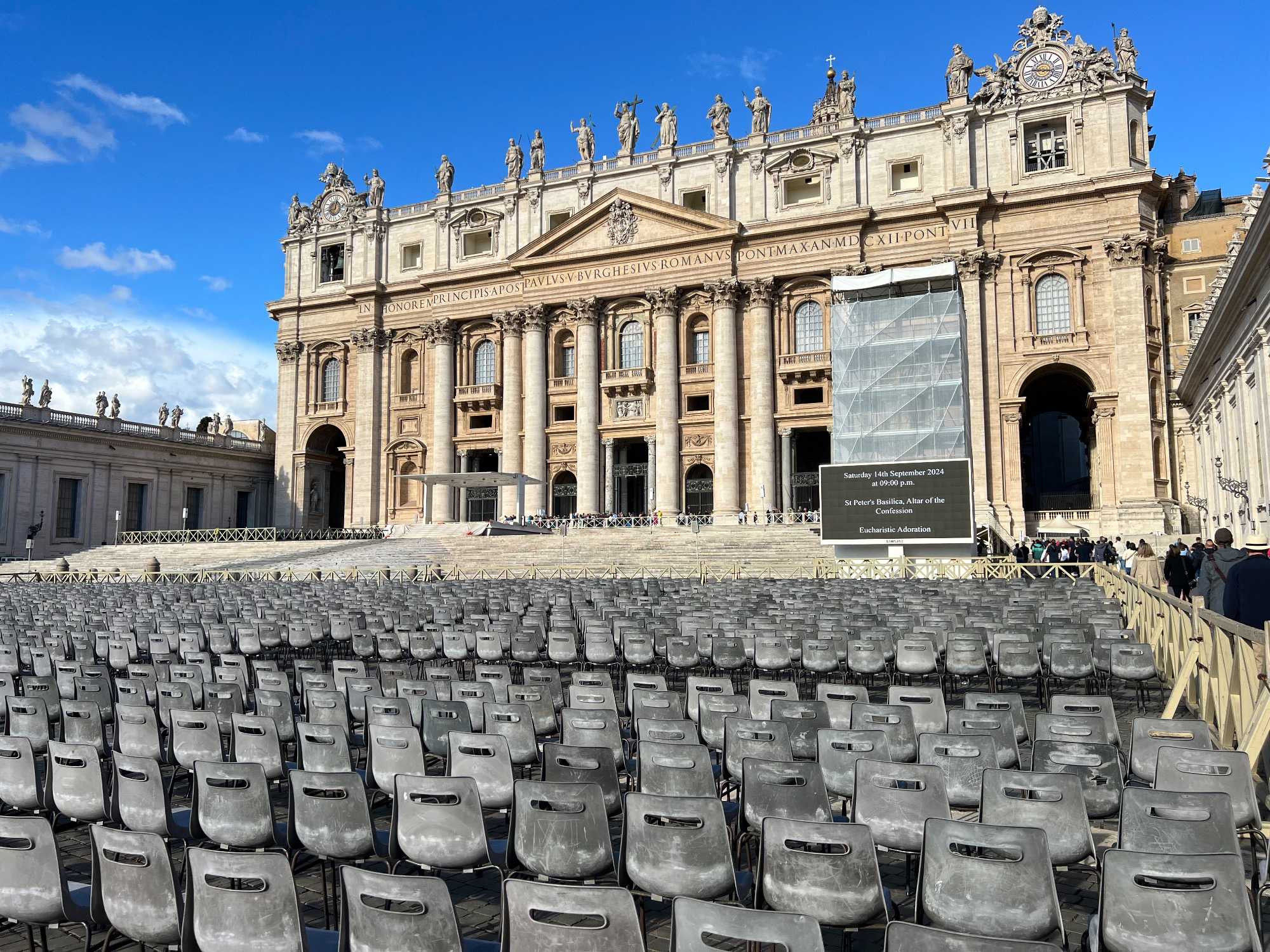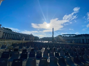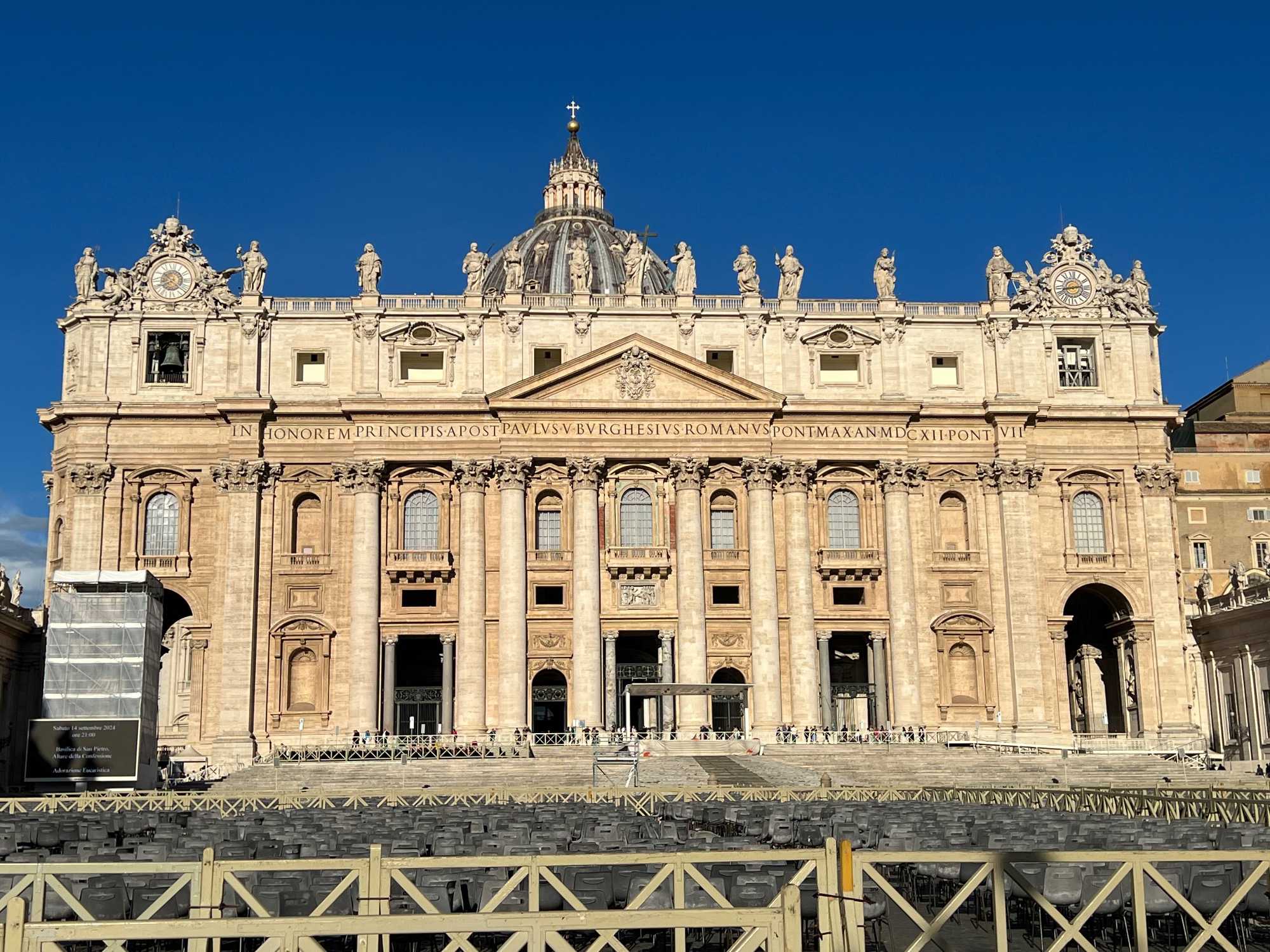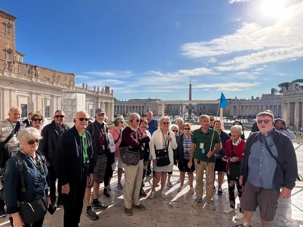 Après un bon petit-déjeuner, nous partons avec Alessandro, qui nous conduit jusqu’à César, notre guide que nous avons eu hier et qui cette fois, nous fera visiter le Vatican et la place Saint-Pierre. César est un guide expérimenté qui travaille avec nous depuis plusieurs années. C’est un passionné et on s’en rend vite compte par ses riches descriptions et explications.