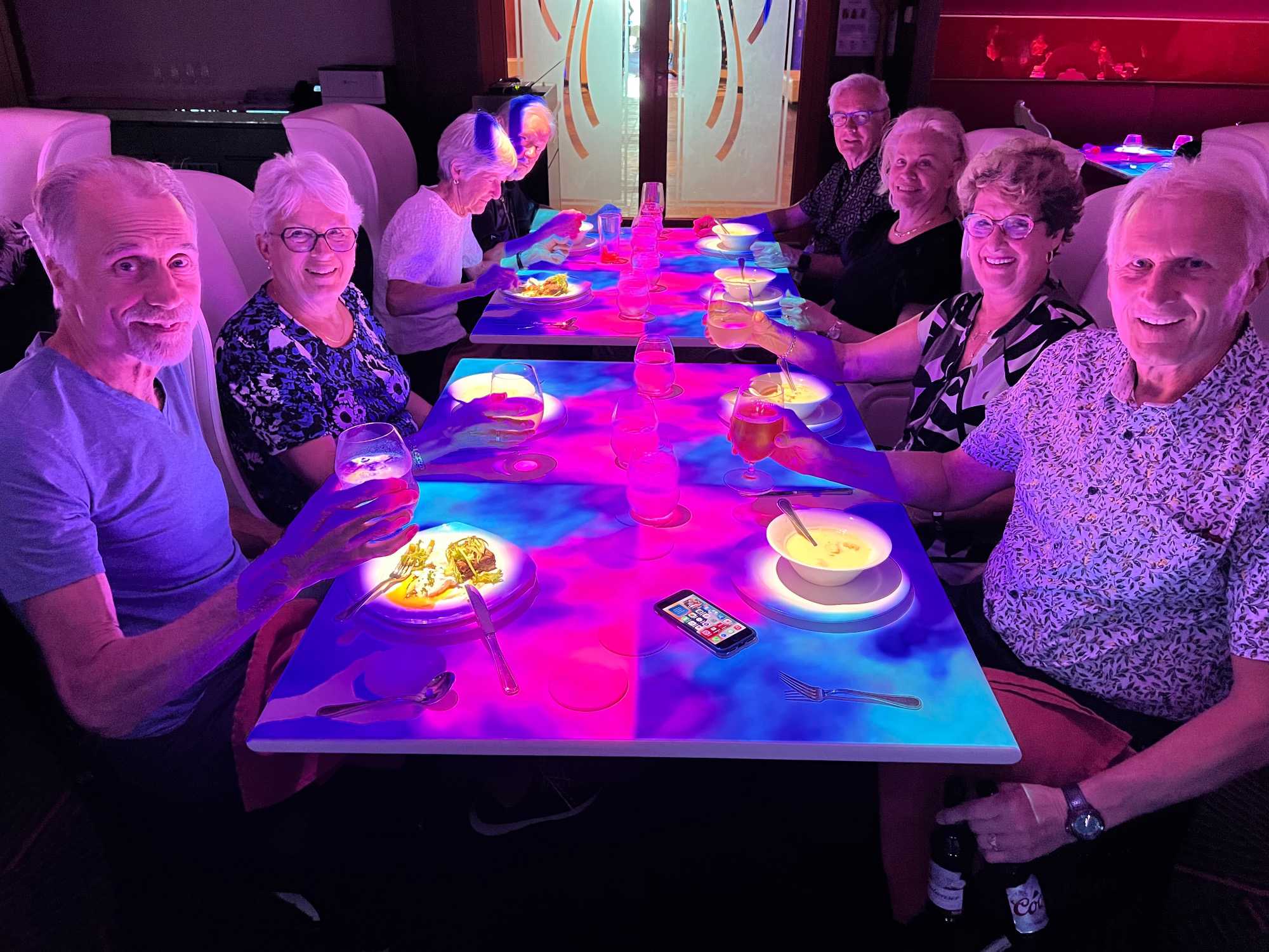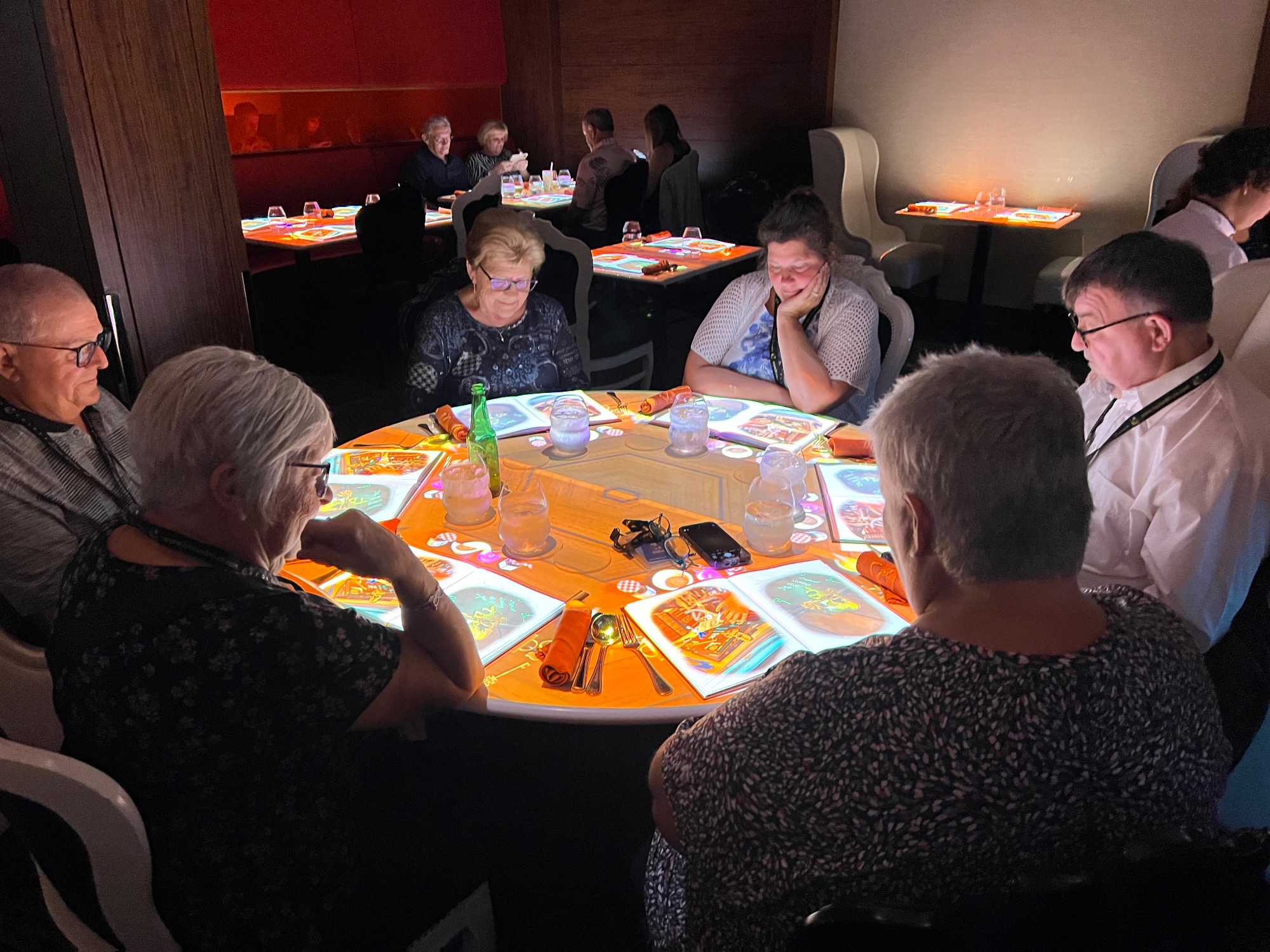 Le souper est bien attendu à la salle à manger. En effet, Voyage Louise Drouin invite tous nos voyageurs à un restaurant de spécialité. Quelle belle attention de la part de Louise Drouin ! Nous allons faire vivre l’expérience du Petit chef à nos voyageurs. C’est toute un spectacle qui les attend. Tout le monde adore, autant la nourriture que le spectacle qui est vraiment inédit. (On change souvent le spectacle présenté car ce fut un nouveau pour moi aussi). Quel délice! Autant le vin que les mets présentés sont excellents. Nous passons un excellent moment tous ensemble à partager entre nous.